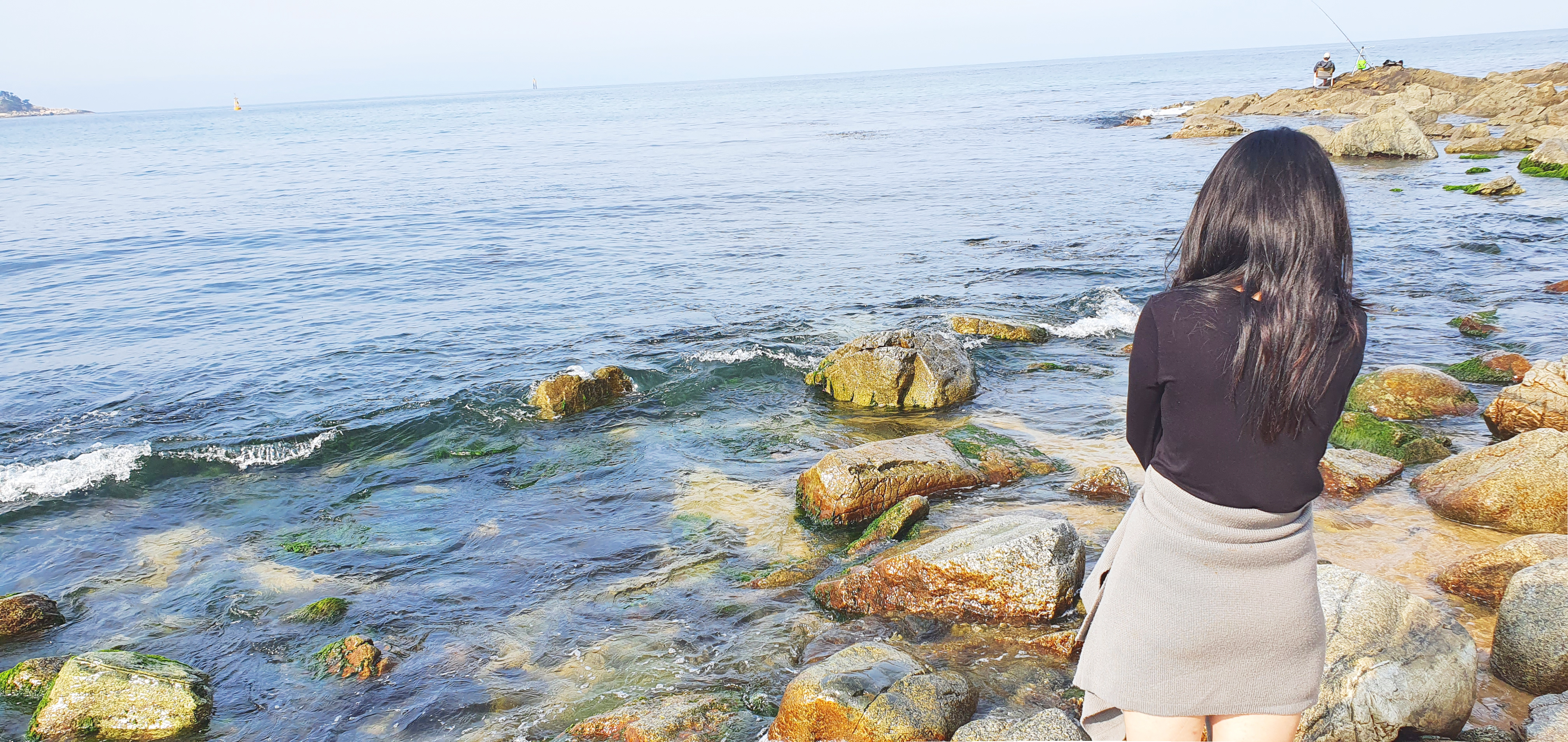 주변에는 흔한 다리도, 반대편에 있을 것 같은 리조트도 찾아볼 수 없다. 망망대해가 펼쳐져있을 것 같은 수평선만 보일 뿐이다. 근처에 튼튼해보이는 바위가 있어 올라갔다. 평소보다 높은 위치에서 보는 바다는 더 넓었고, 아까보다 더 시원한 바람이 불었고, 불안정한 자세에서 미끄러질 것 같은 두근거림도 느낄 수 있었다.