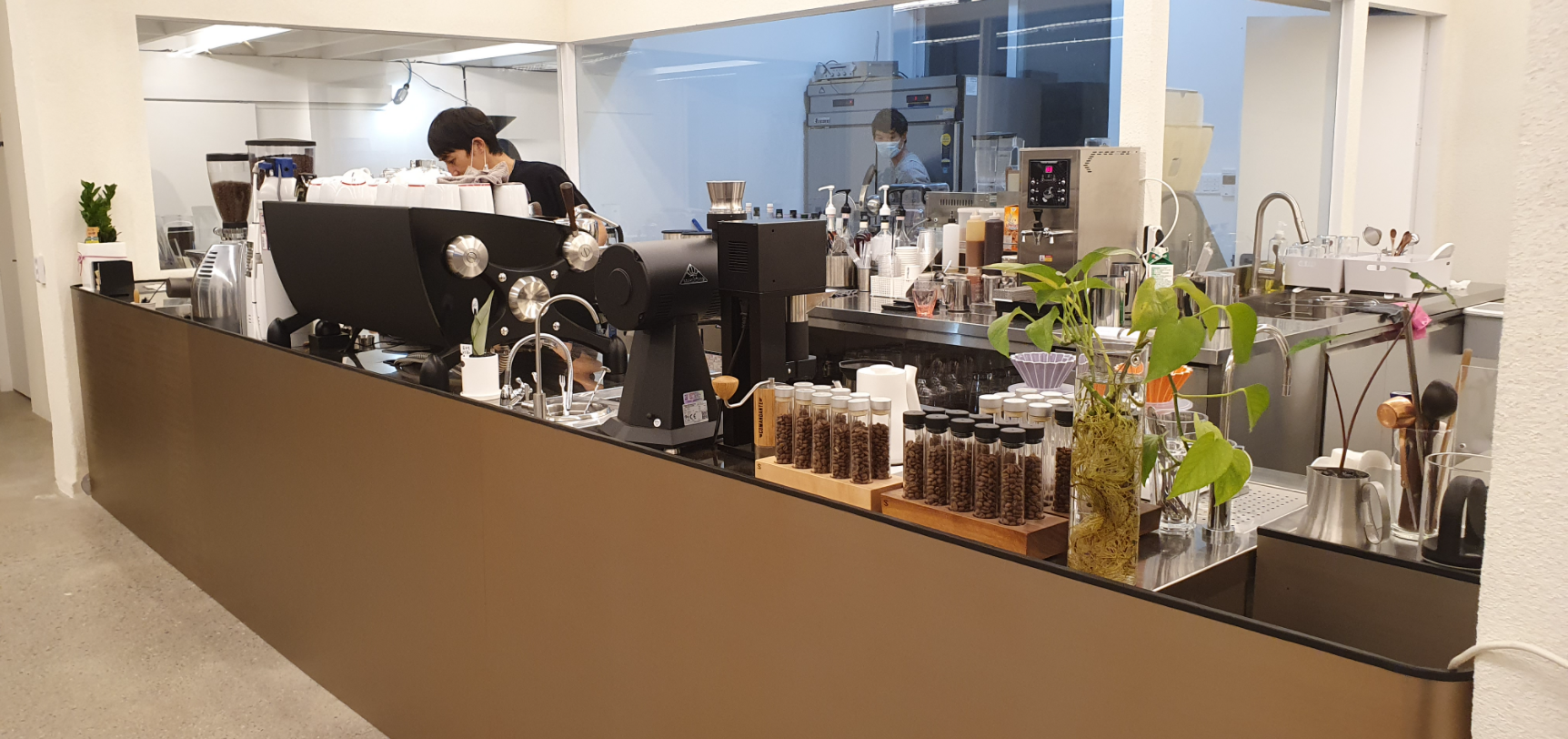 [공간/느낌] 전체적으로 환한 조명 & 화이트 톤에 테이블이 넉넉하게 떨어져있어서 좋았어요. 아직 오픈 초기라 그런지 특징이 되는 인테리어 소품이라던가, 카페솔루션만의 분위기는 잡히지 않은 느낌이었어요. 이런건 서서히 운영해나가면서 자리잡겠죠. 아직까지는 전반적으로 깔끔한 로스터리 카페다 정도?