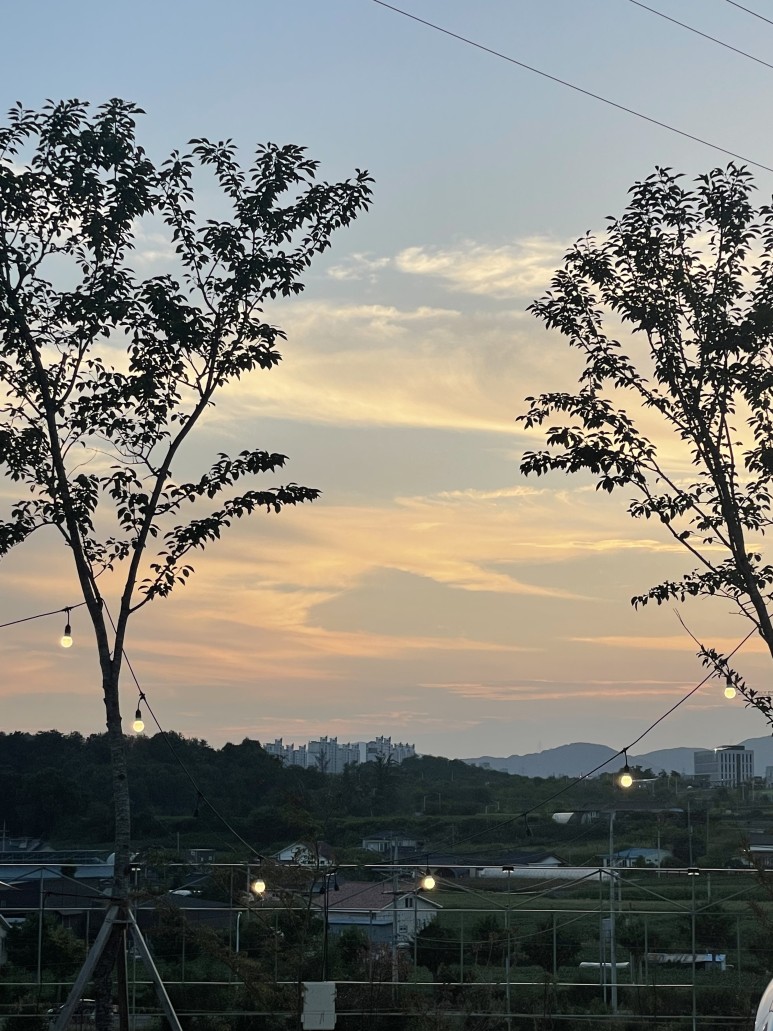 덥긴 했지만 바람이 살랑살랑 불어서 기분이 좋았다. 책 읽고 줄 긋고 메모하고.. 뭔가 삶을 잘 사는 것 같은 느낌이 들어서 행복했다. 해가 뉘엿뉘엿 져갈때 보이는 하늘이 얼마나 예뻤던지..!