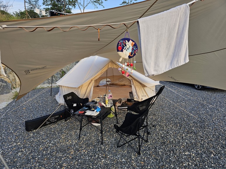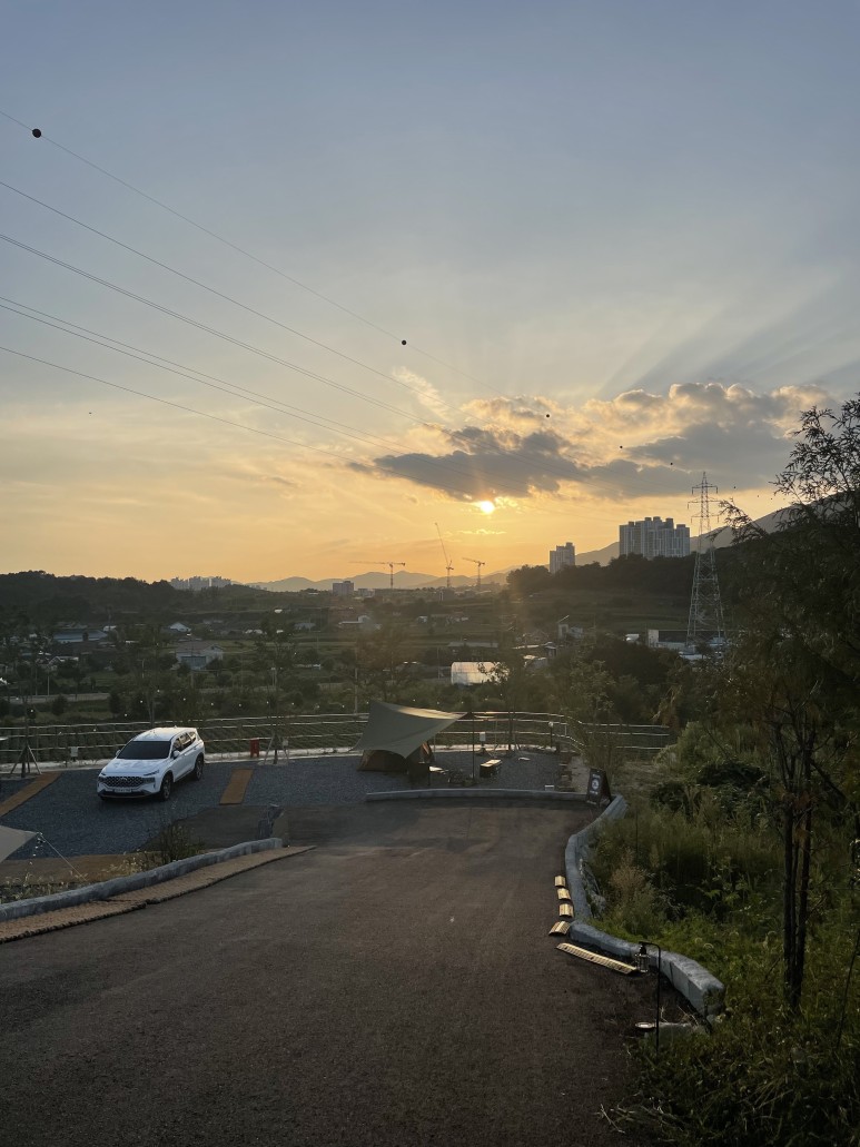 뷰 포인트만 중요할 줄 알았는데 해가 어느 방향으로 지는 지도 체크는 필요할 것 같다. 캠핑장 사장님이 해 들어오면 타프 내리라고 했는데 해가 거의 지고 나서야 생각이 났다며 ^_ㅠ