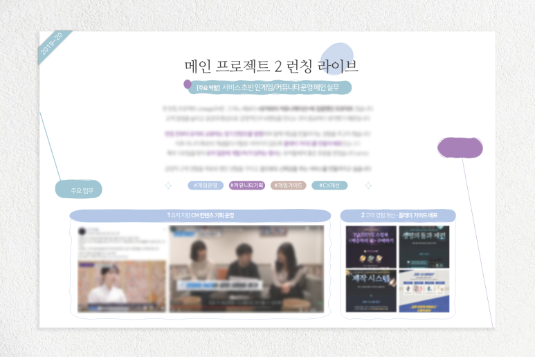 우선 경력은 프로젝트 단위로 설명하는 게 연도/경력 이해 측면에서 좋다. 단 프로젝트 명함 = 내 커리어로 오해하면 안된다. 나도 주니어때까지는 시장에서 성공한 커리어 있다고 우쭐댔었는데 지금 생각해보면 얼마나 부끄러운지 모른다.