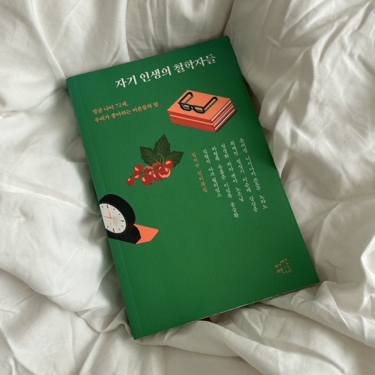 거기다 소위 멘토라는, 롤모델이라고 하는 잘난 사람들은 많은데 지친 삶에서 믿고 따라 갈 등불같은 사람은 당최 찾기가 힘든 것 같습니다. 그때 만난 것이 <자기 인생의 철학자들>이란 책입니다. 제목처럼 자기 인생의 철학자들이라 하는 어른들을 인터뷰하여 묶어 낸 책인데요. 평균연령 72세 노인들은 우리가 삶에 대해 느끼는 온도에 기꺼이 공감하면서도, 먼저 삶으로써 알아낸 '삶의 요령'들을 솔직하고 담백하게 알려줍니다. 마치 쇼핑몰에 있는 상품의 한달 사용 후기랑 비슷하달까요? " 먼저 인생 패키지를 써보니 이건 좋고 이건 구리더라구요. 그래서 저는 아쉬운대로 요렇게 씀 "