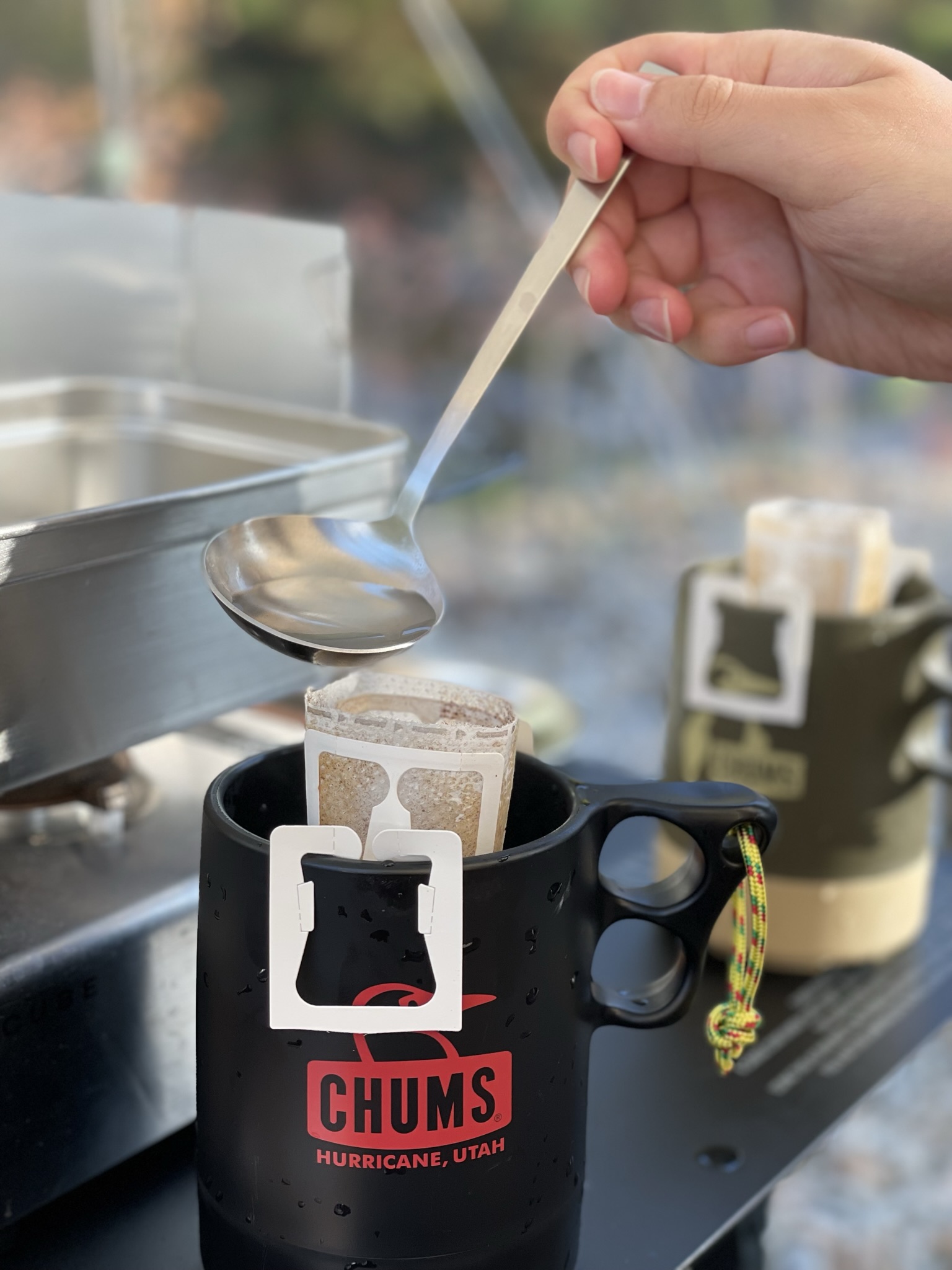 아침에 일어났는데 비오는 줄 알고 깜짝놀랐다. 근데 그냥 시냇물 소리였다고 한다 하하하.. 시냇물 소리 들으면서 따뜻한 커피 마시니까 진짜 녹는 것 같았다. 커피 타임은 좋긴 했지만, 사실 원터치 텐트에서 이불깔고 자니까 아침에 등이 아팠다. 꼬질한 내 모습을 보면서 '노숙을 하면 사람이 이렇게 되는구나'를 깨달았다. 여튼 그래도 재밌었다..!