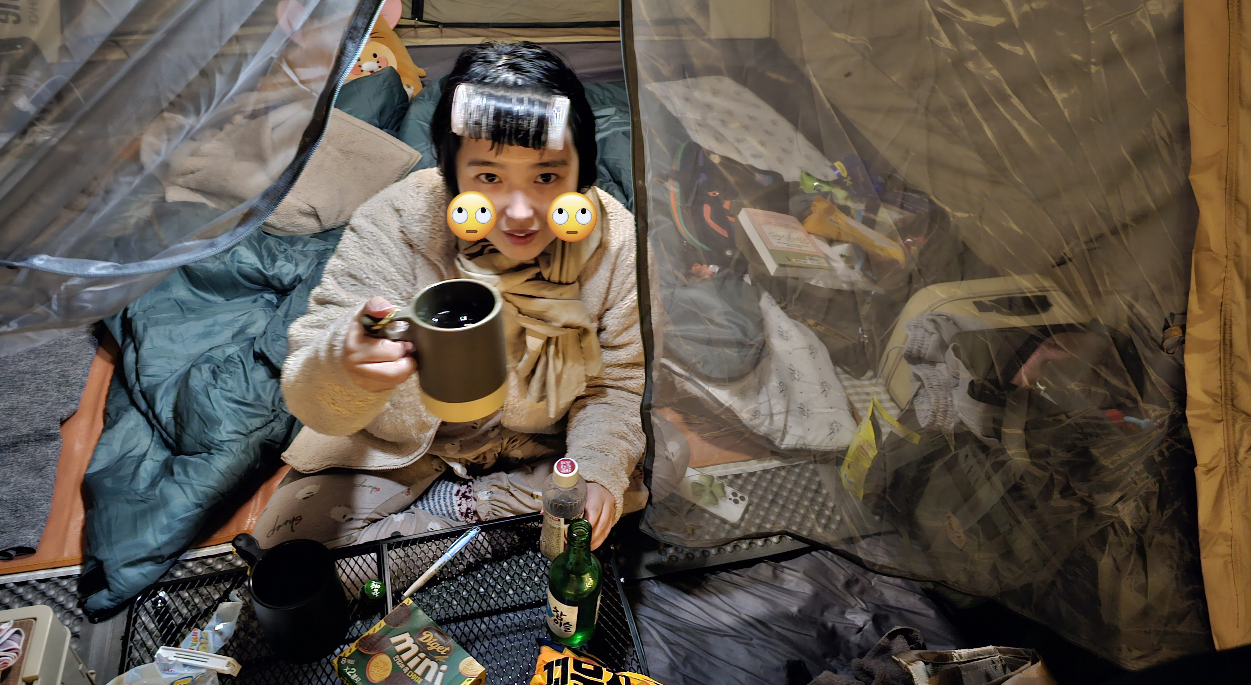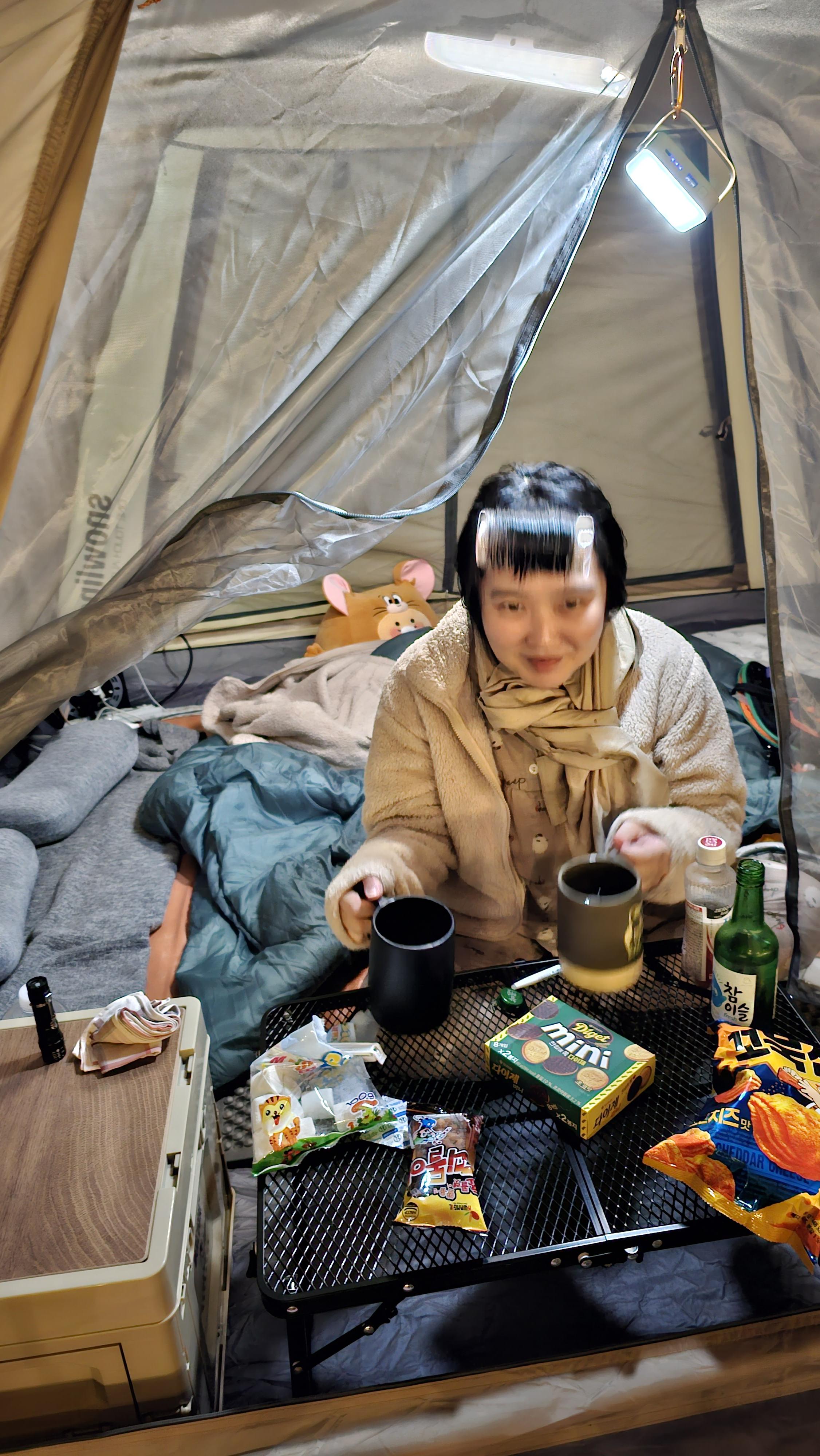 매점에 홍차 토닉워터가 있어서 소토닉을 먹었다. 꽤 맛있었다고 한다. 텐트 안에서 소토닉을 말아서 바깥에 있는 동글이에게 건내줬는데, 약간 장사하는 느낌이 들어서 같이 상황극하고 놀았다. 동글이는 요즘 이사진을 되게 좋아한다.
