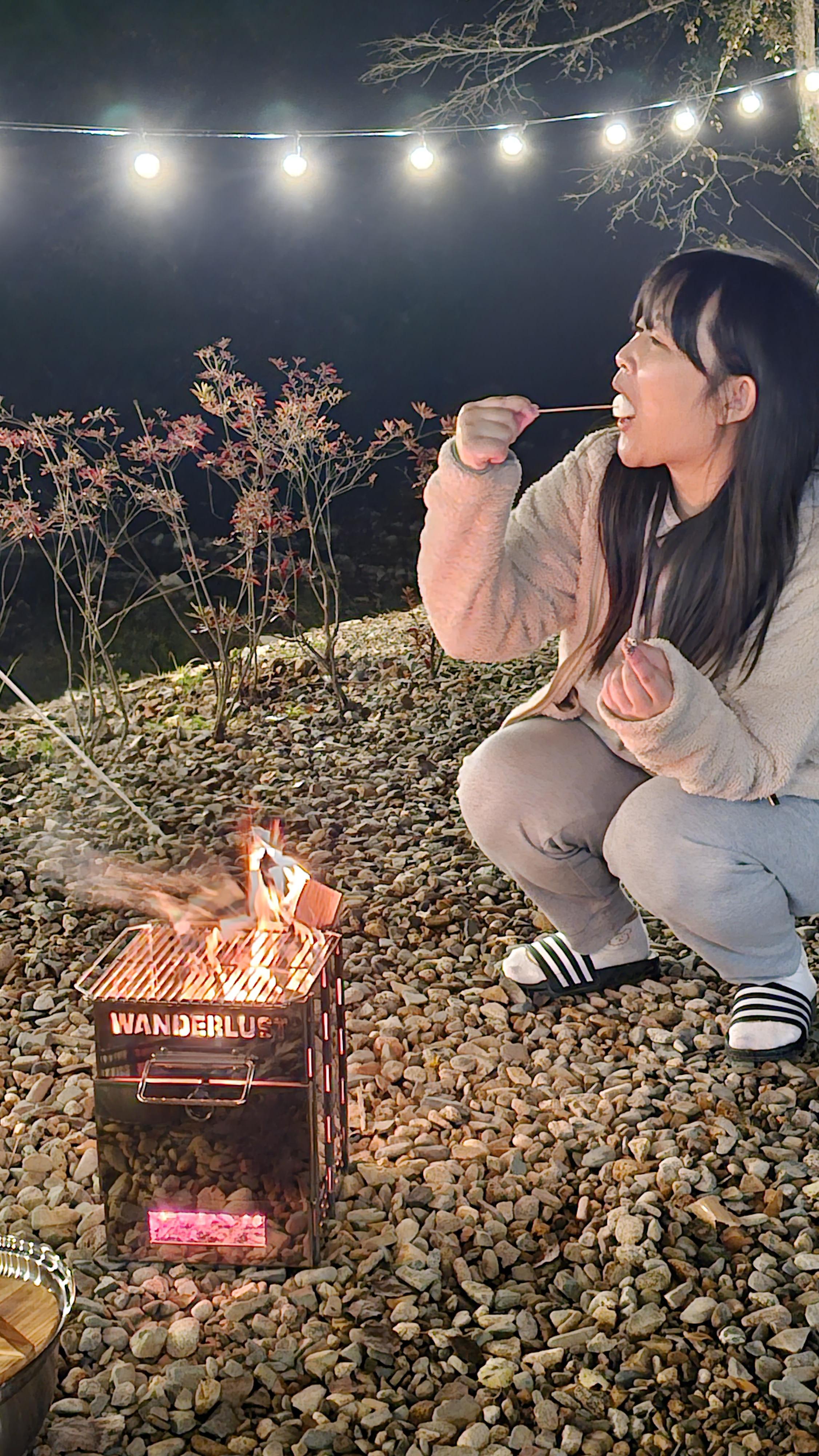 이날 마시멜로우도 구워먹었다. 여태껏 나는 이상하게 그을리거나 왕창 타버린 마시멜로우만 먹어서 도대체 이딴걸 왜 먹는거야라고 생각했었다. 근데 조조캠핑에서 겉에만 바삭하게 구워서 먹고, 또 안에 있는 마시멜로우를 구워먹는 방법을 알려줘서 해봤는데 진짜 너무 맛있었다! 이래서 미국 애들이 마시멜로우를 몇 봉지씩 먹는구나..했다