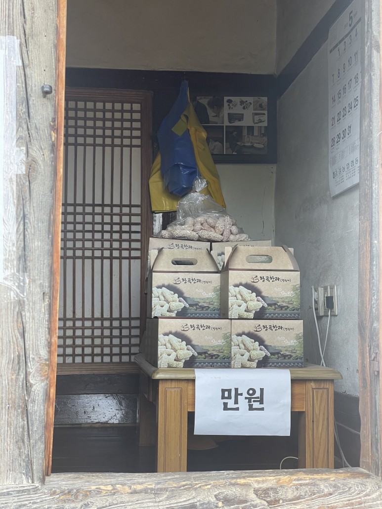 동글이 피셜 본인의 인생 한과집이라고 하는 곳이다. 에피그램에서 최근 광고 촬영을 온 것 같았다. 왕곡마을 북쪽에 위치하고 있고 위로 쭉 가볼가?하면서 걷다 보면 자연스럽게 나오는 곳이다