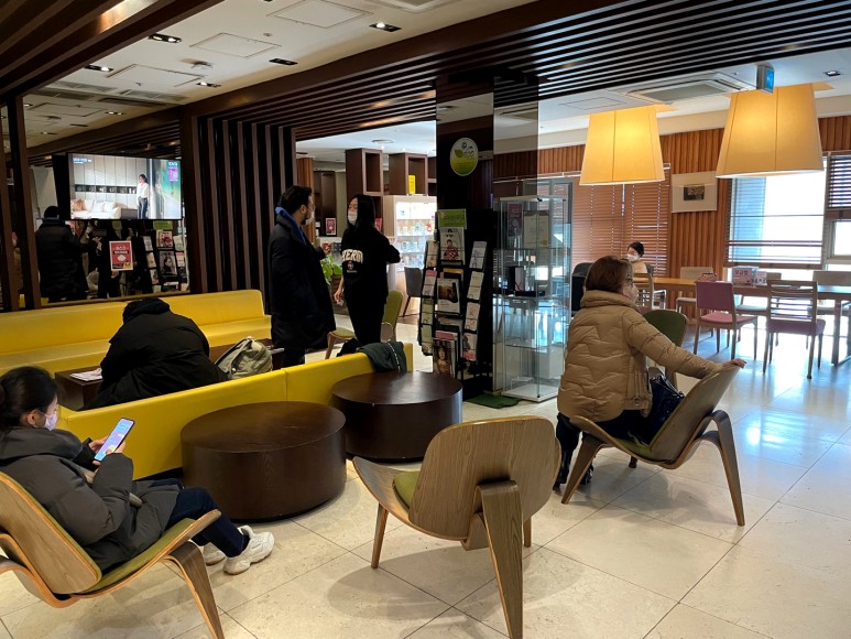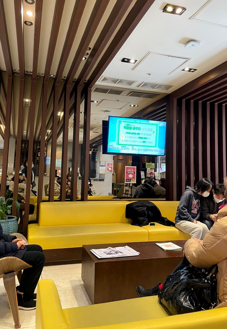 1층은 내과라서 약간 얼탔다. 엘리베이터나 계단타고 2층 산부인과로 들어와서 데스크에서 접수하면 된다. 네이버에서 예약했더라도 추가로 접수를 해야 한다. 이름 부르기 전까지 앞쪽에서 쉬면서 기다리면 되는데, 병원 특성상 내가 예약한 시간에 방문하더라도 대기가 길다.