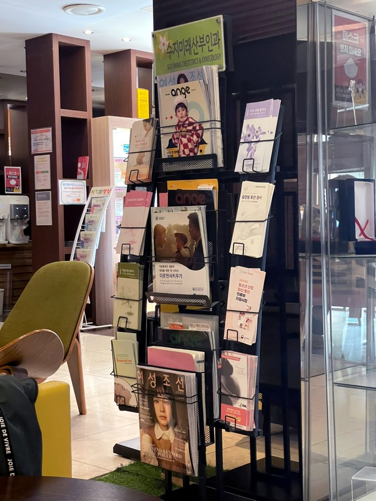 조금 오래되었지만 대기 장소도 깔끔한 편이다. 뒷쪽 진열대에 임신, 출산 축하 선물도 있었다.