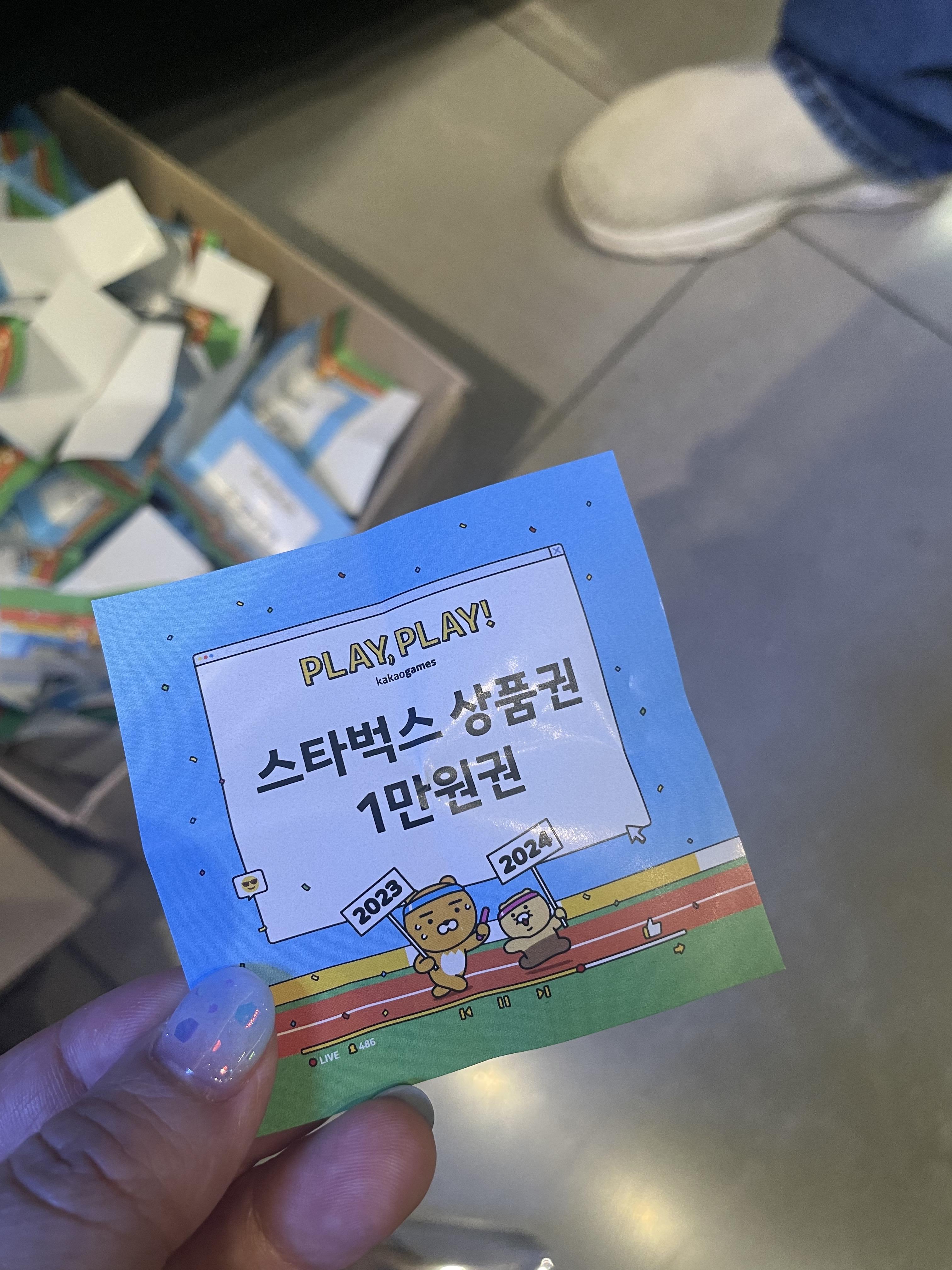 캡슐 뽑기에서 스타벅스 상품권이 또! 당첨되었고, 기대가 없었던 캐리커쳐가 제일 만족스러웠다. 이렇게 예쁘게 그려주시다니..! 다들 자리에 붙여놓는 분위기라 나도 그 분위기에 합세했다. 그릇 만들기는 너무 조그맣게 그려서 잘 안나올 것 같다 ㅠ 큐치툰 그릇 만들고 싶었는데에에에 ㅠ