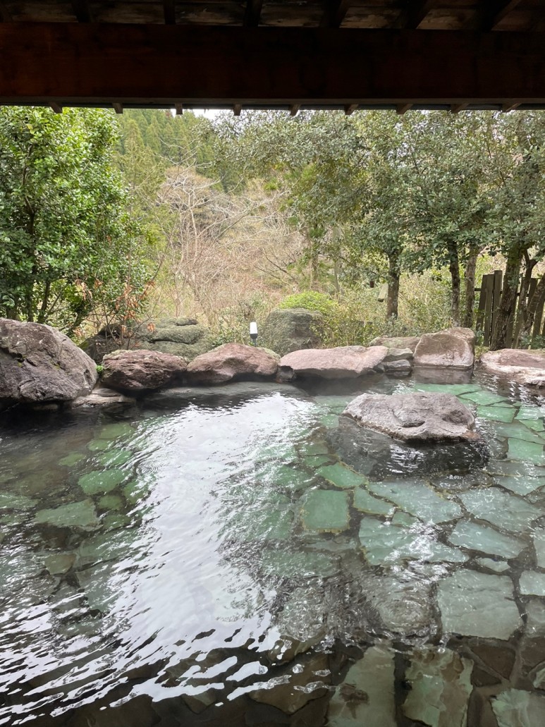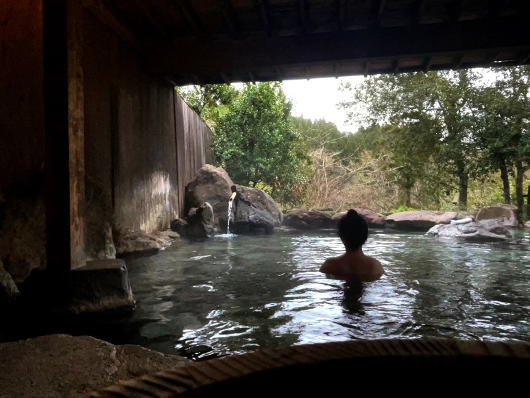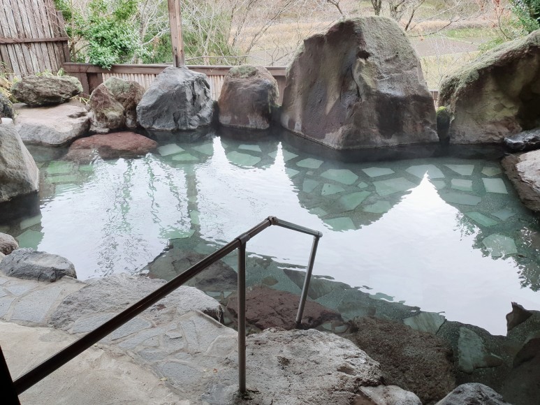 바구니에 짐을 넣고 들어가면 되고 목욕하는 공간을 넘으면 노천탕이 보인다.