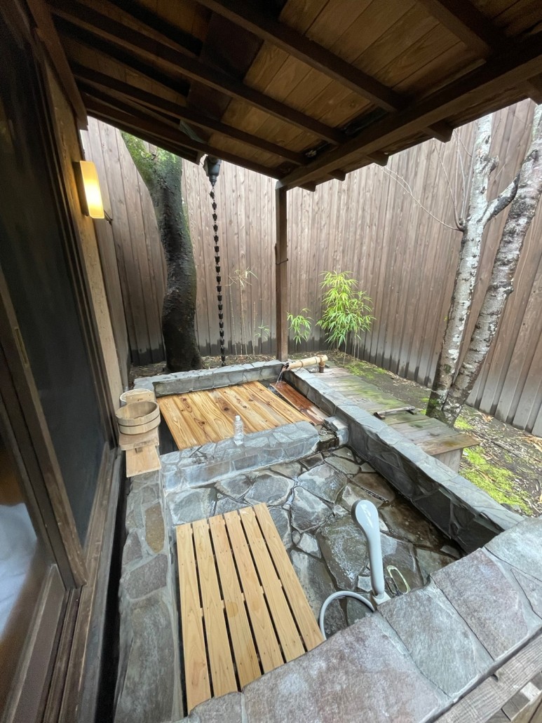 침실과 세면실을 넘어가면 프라이빗 별채 온천이 마련되어 있다. 샤워기도 있어 간단하게 씻을 수도 있음. 크기가 작아보일 수 있는데 성인 남녀 둘 정도는 알맞게 들어간다. 마주보고는 아니고 같은 곳을 바라봐야 함 ㅋㅋㅋㅋㅋㅋㅋㅋㅋㅋㅋㅋ