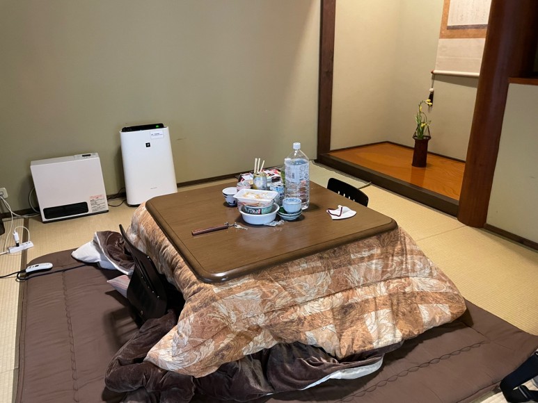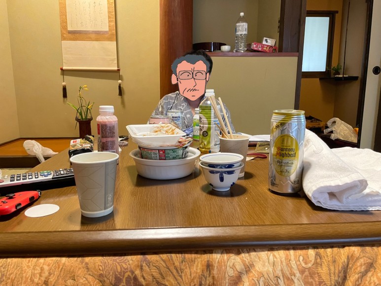 가이세키 없는 상품이 있어 우리는 no meal 플랜으로 예약했었다. 마트에서 음식 왕창 사다 먹었는데 나름 괜찮았다. 특히 57엔짜리 딸기모찌는 정말...! 이때도 코타츠가 한 몫했다!