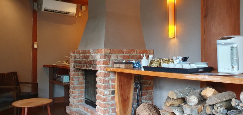 프론트에서 예약 확인은 긴 테이블에 편안하게 앉아서 진행했다. 통창으로 료칸 풍경을 볼 수 있어서 느긋하고 편안하게 숙소를 기다릴 수 있었다.