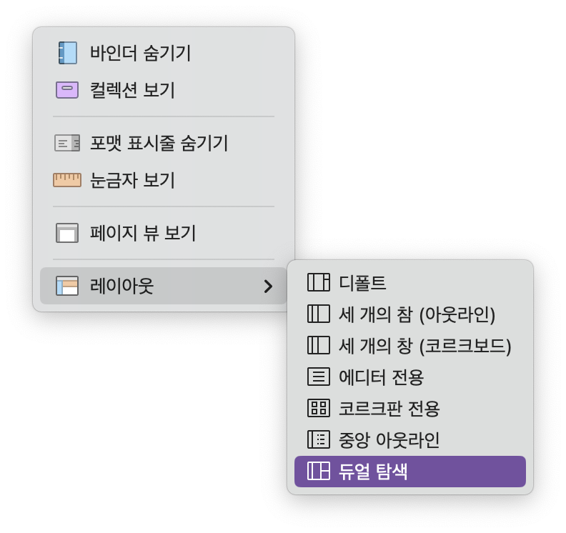 왼쪽 상단에 돋보기 옆에 보기 형태를 선택하는 곳이 있다. 기본 템플릿에 듀얼 탐색으로 세팅되긴했지만, 중간에 오른쪽 하단 창이 없어지던가 하면 무조건 저기서 다시 듀얼 탐색을 누르면 돌아온다