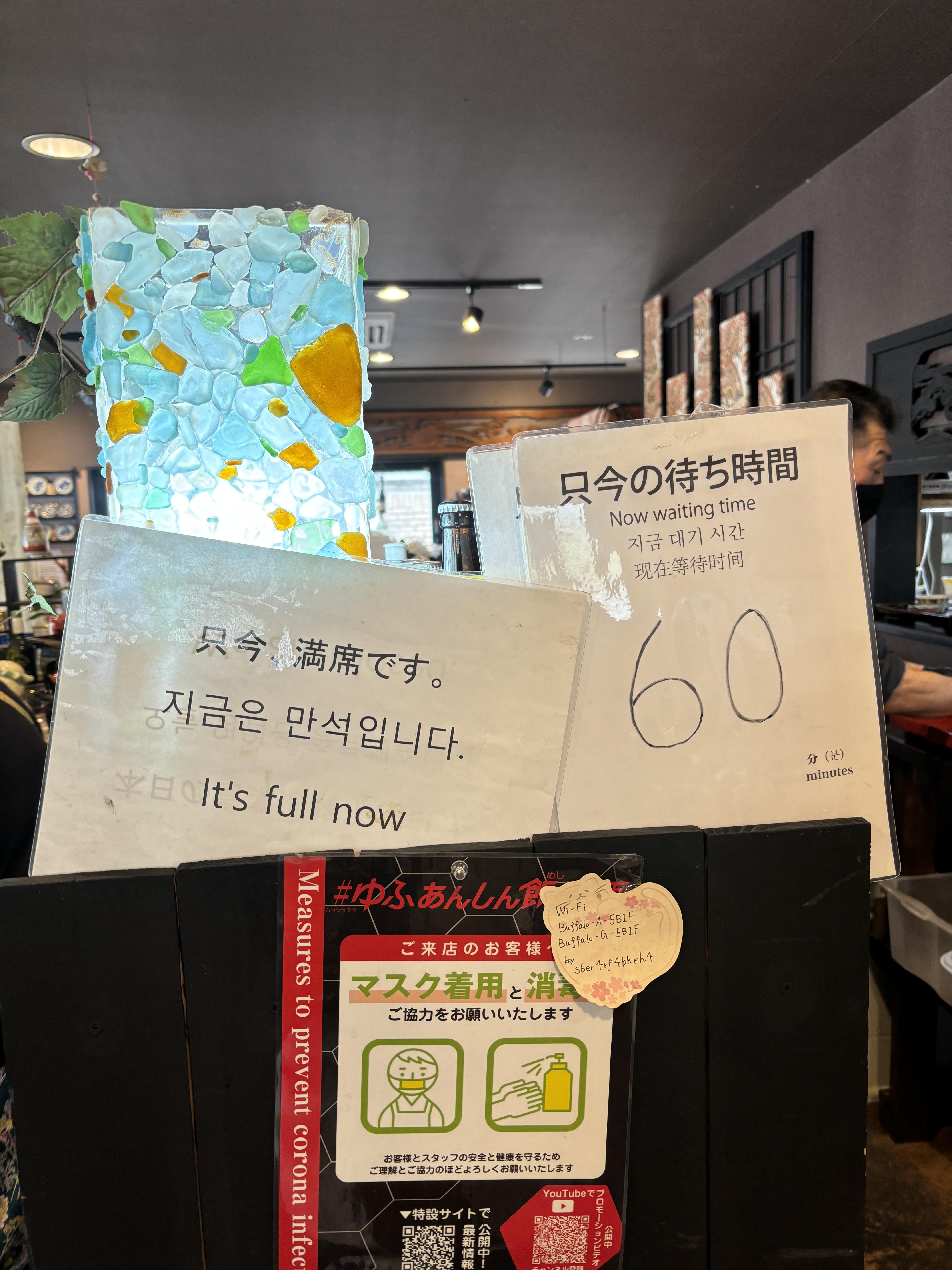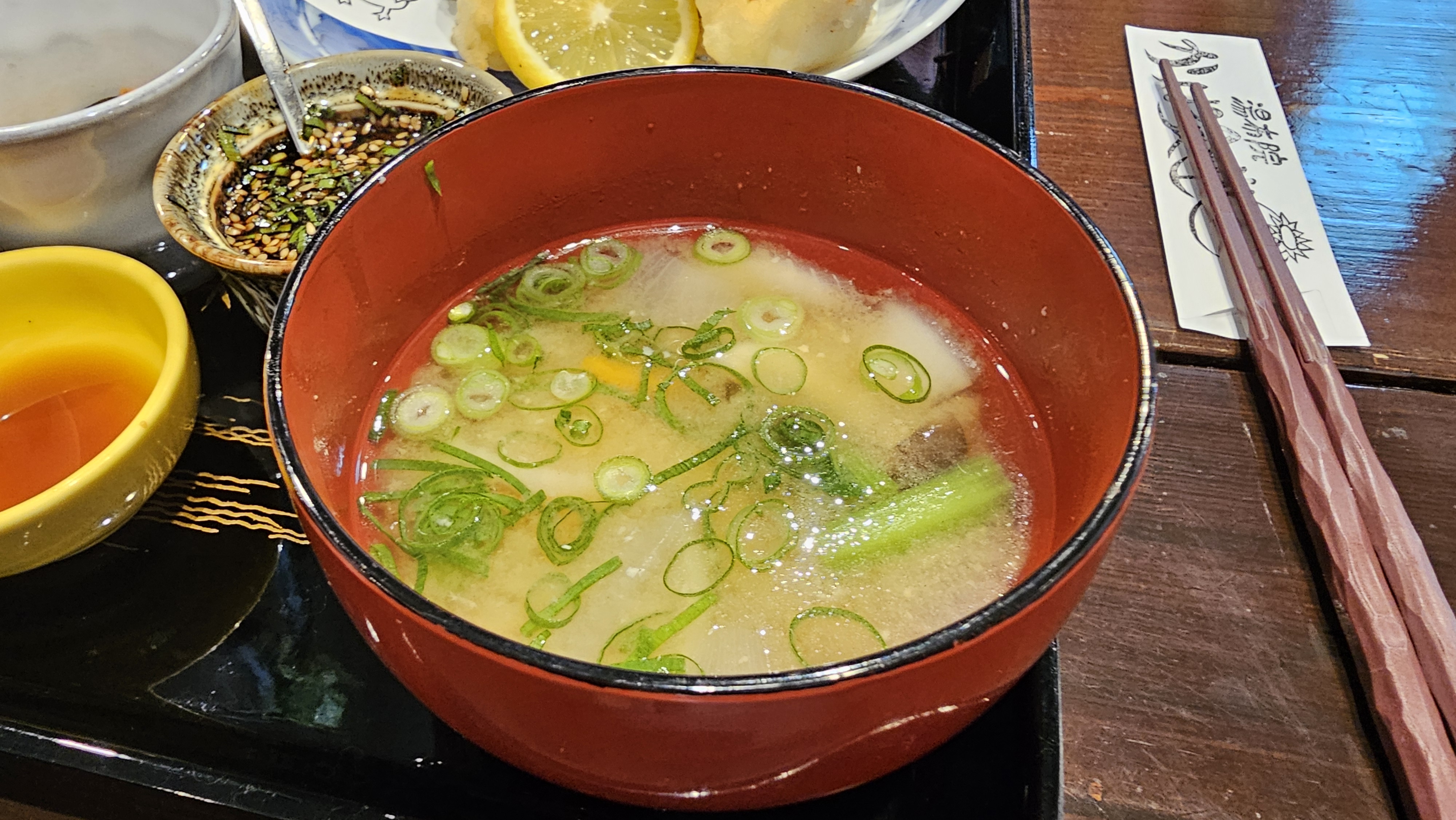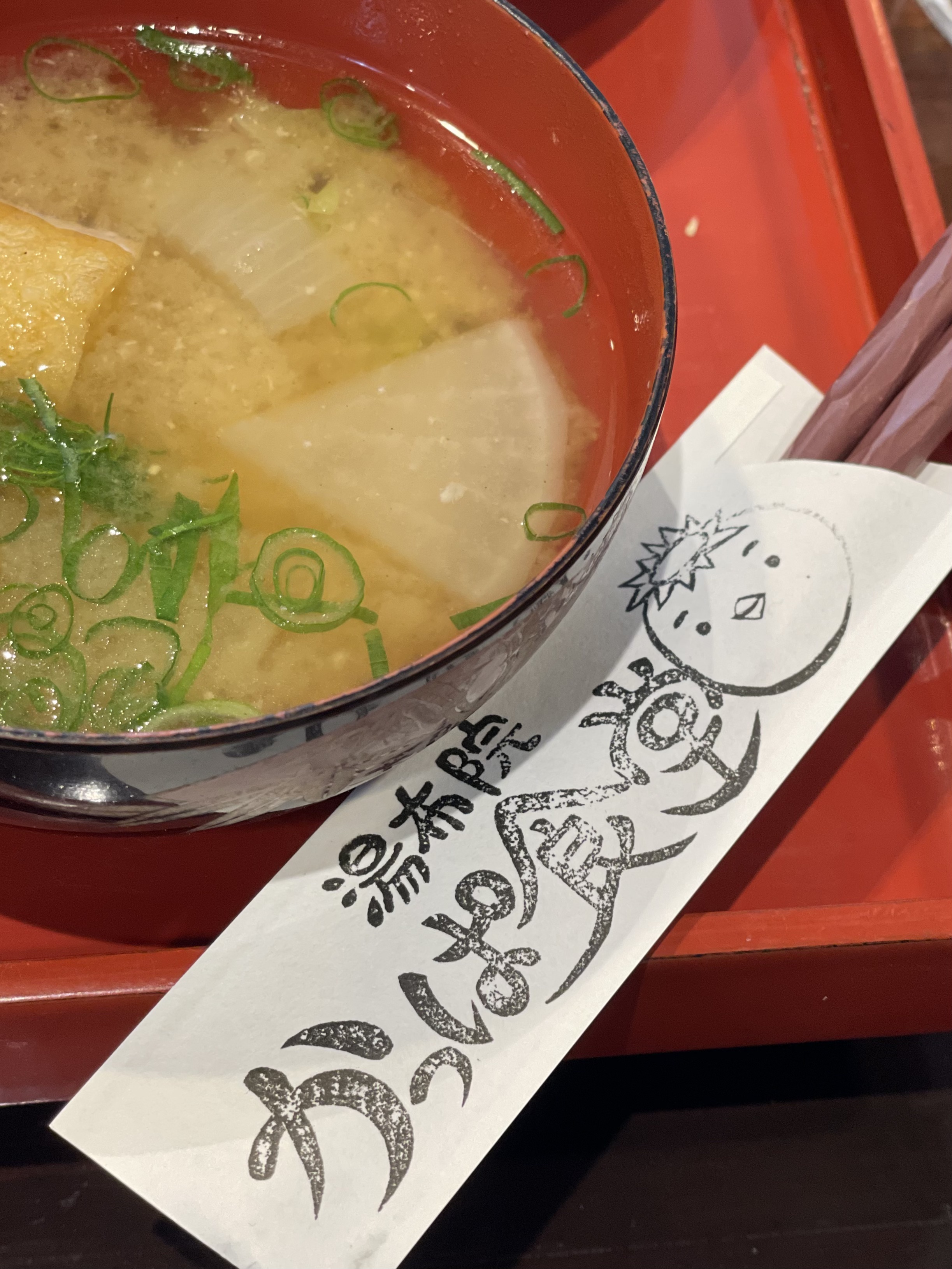 예전에 왔을 때는 한국어 메뉴가 없었는데 한국어 메뉴도 생겼다. 근데 메뉴판을 못찍었다. 만석이다/60분 걸린다 이런 내용도 한국어 패치가 되어 있었다. 그새 한국사람들한테 엄청 인기가 있어졌나 보다. 사과즙 된장국은 메인 메뉴에도나온다고해서 나머지 2개 메뉴로시켰다. 그리고 약간 아쉽지만 가격이 올랐고 한다.