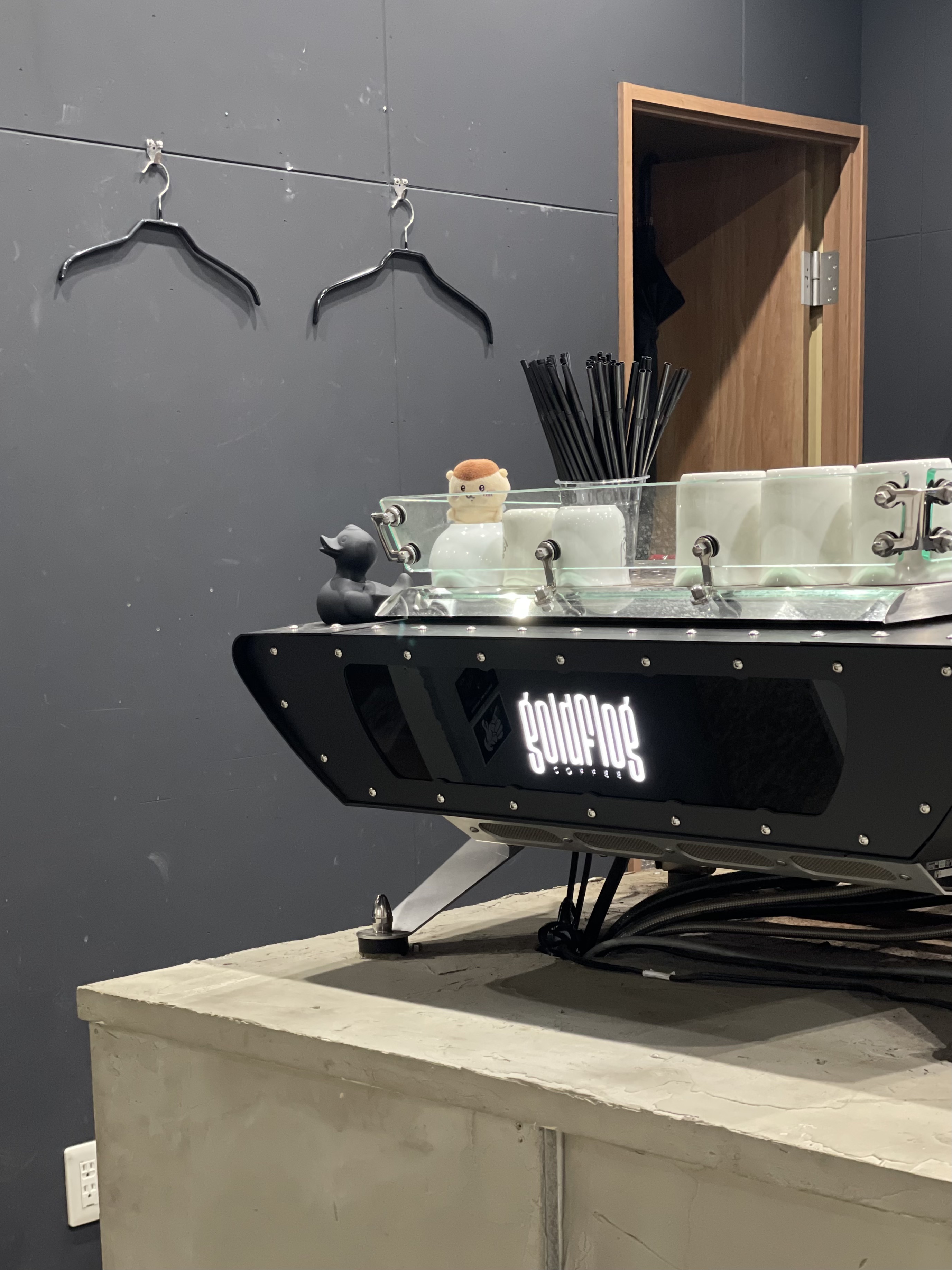 자리가 없던 나랑 동글이는 바 테이블에 앉기로 했다. 사장님이 커피 내리는 모습도 보고 괜찮았던 것 같다. 커피 머신에도 저렇게 카페 이름을 새기는구나.