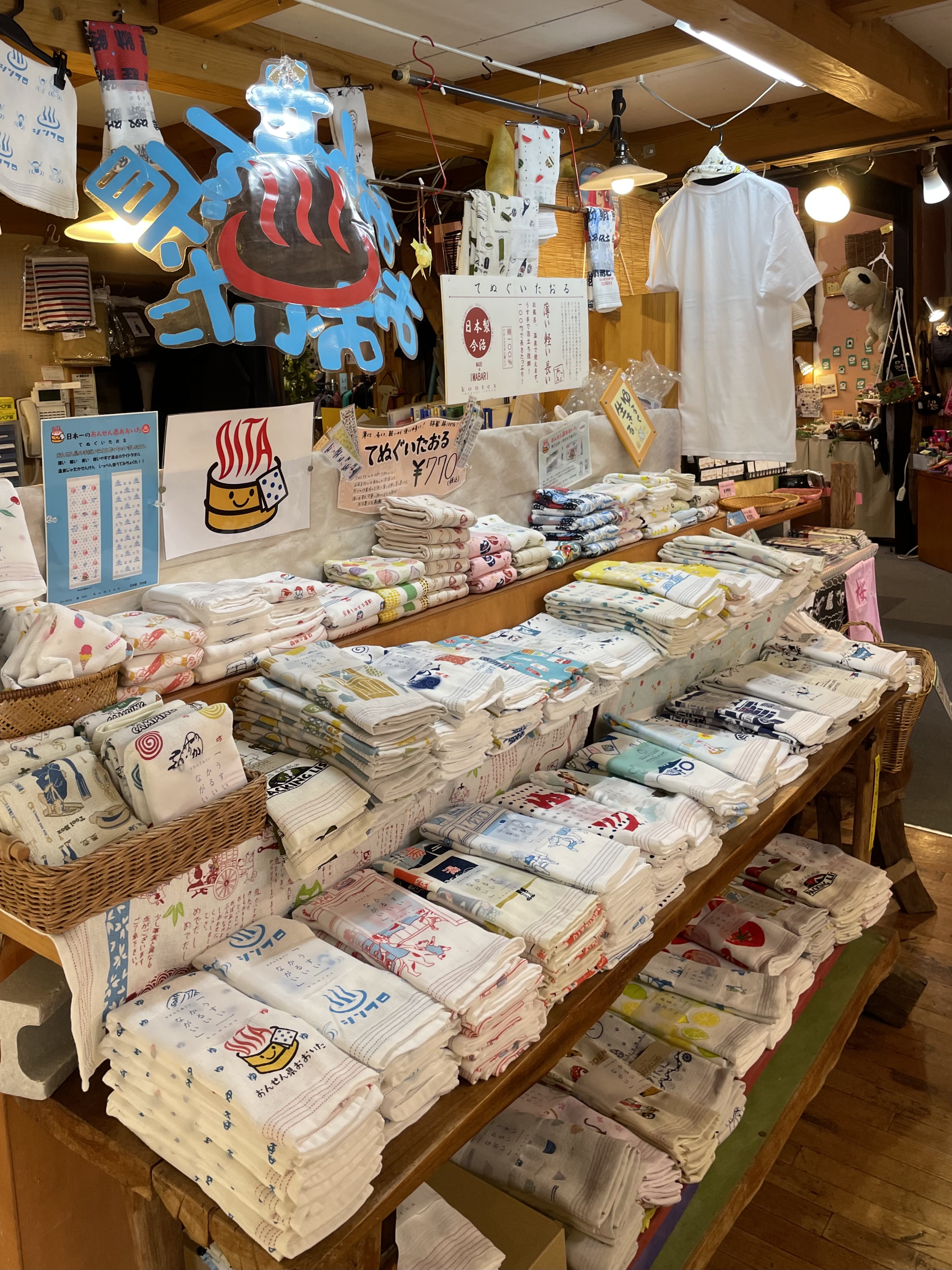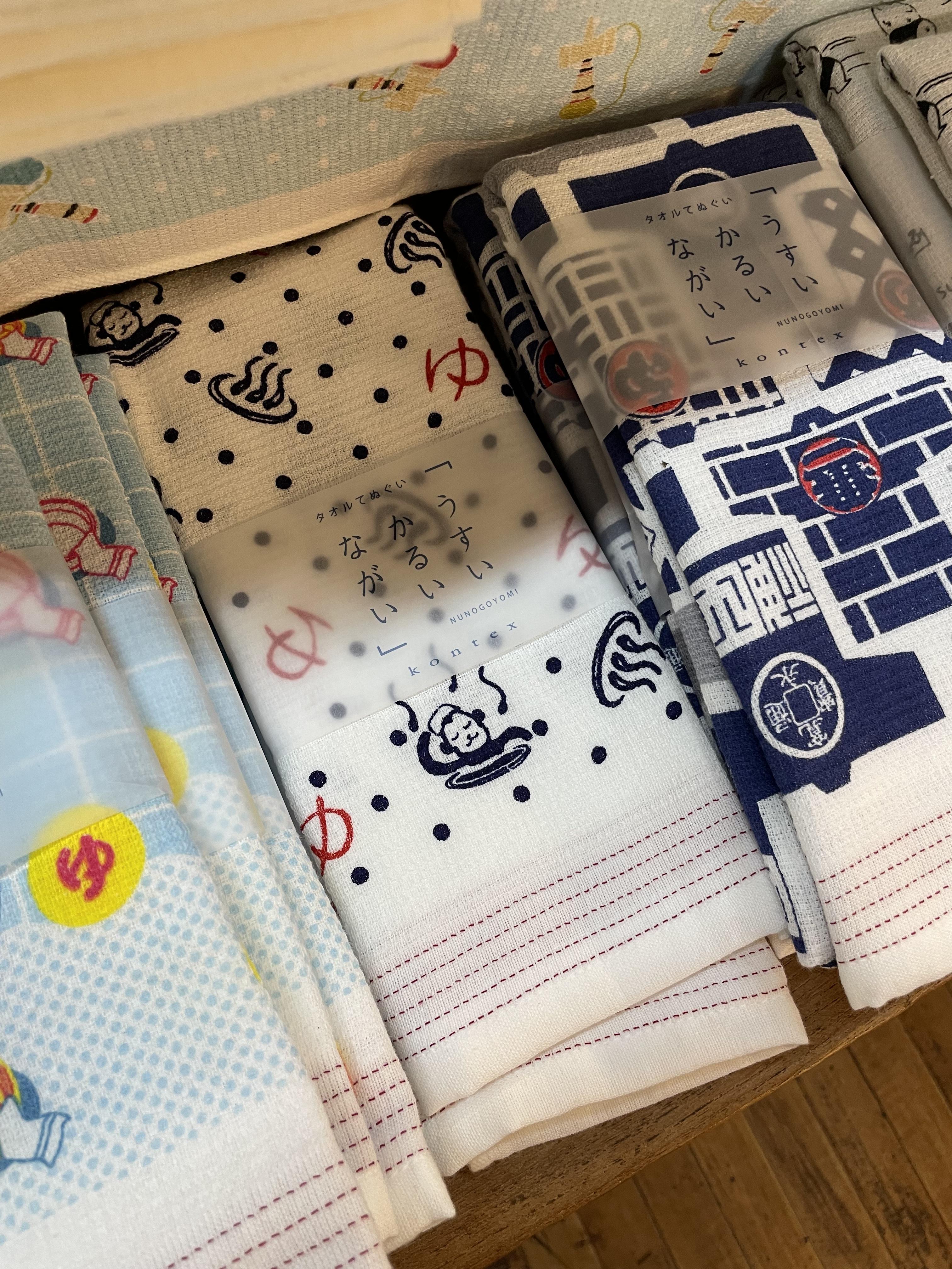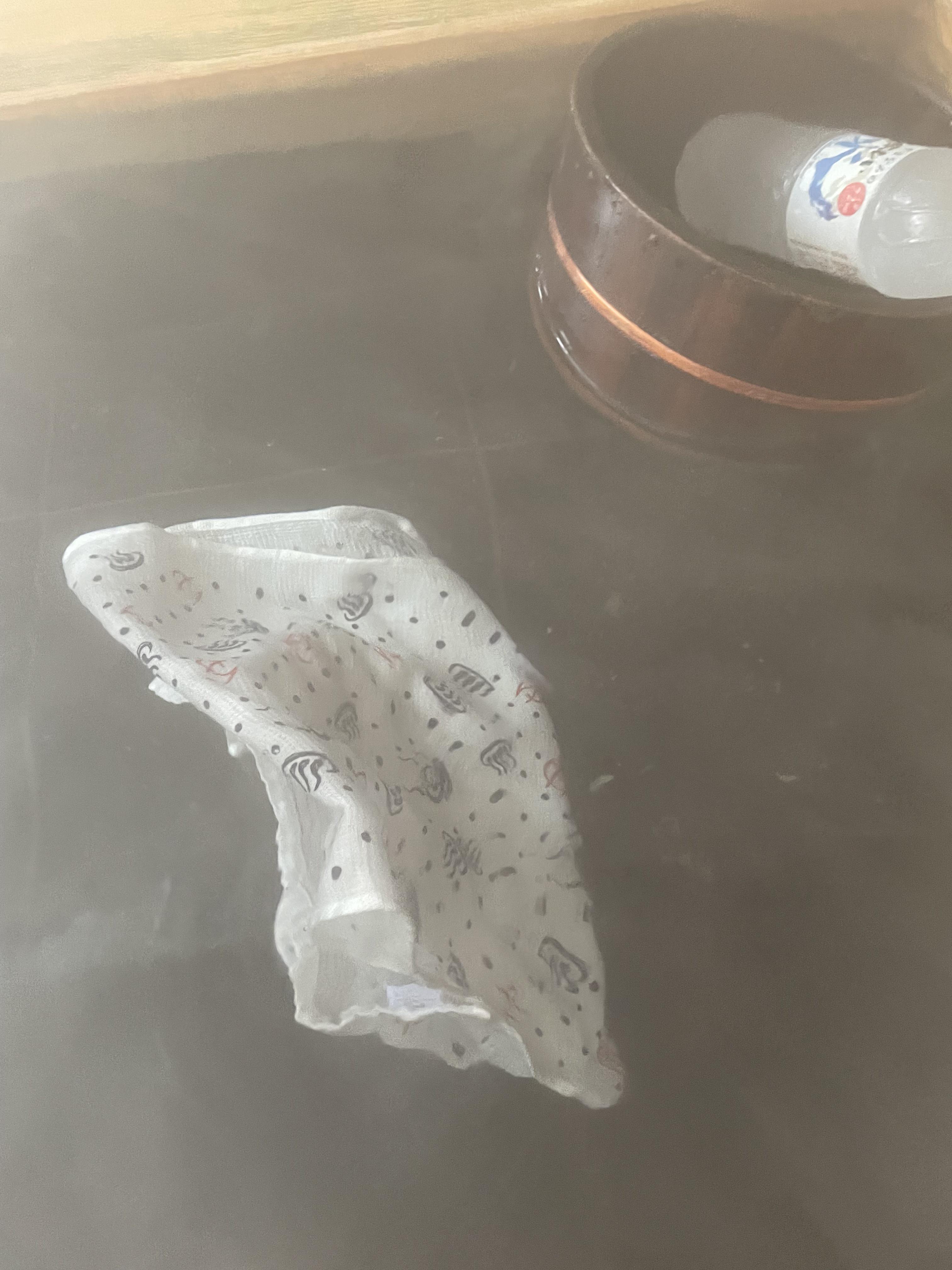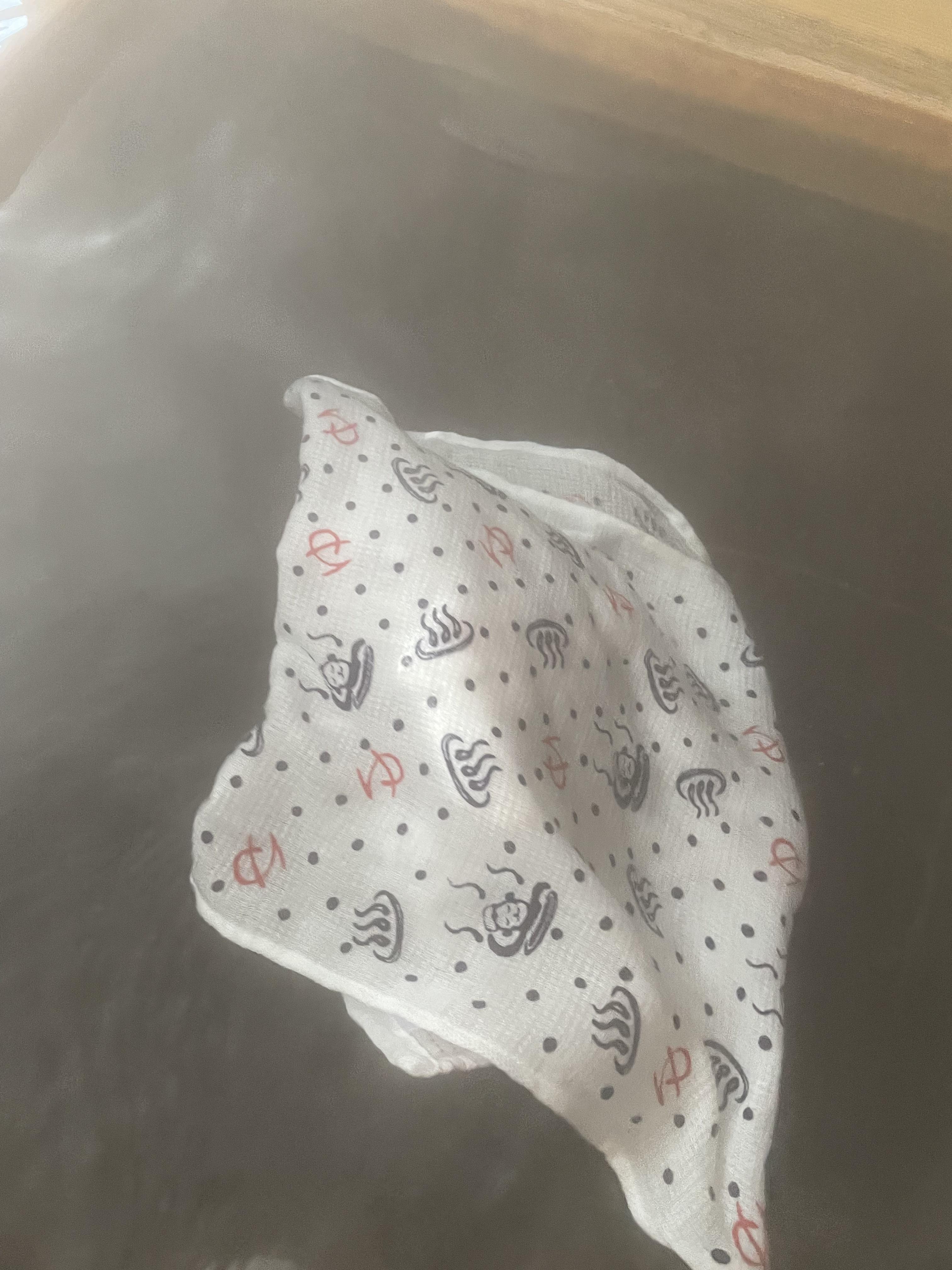 애니메이션이나 드라마에서 다들 머리에 얹는 그 수건..! 사실 그것때문은 아니고 겸사겸사 우연찮게 구매하게 되었는데 진짜 요물이었다. 뜨거운 온천에 들어가기 전에 몸을 데우는 용도로 써도 좋고 수시로 온천 물에 담근 수건을 등에 얹으면 몸을 깊숙히 넣지 않아도 된다. 동글이와 나는 직접적으로 물에 닿기 어려운 얼굴과 귀쪽을 이 수건으로 닦았다. 수건도 얇은 편이라 금방 마른다. 나는 잔나비띠니까 원숭이로, 동글이는 멍멍이 닮았으니까 멍멍이 수건으로 했다.