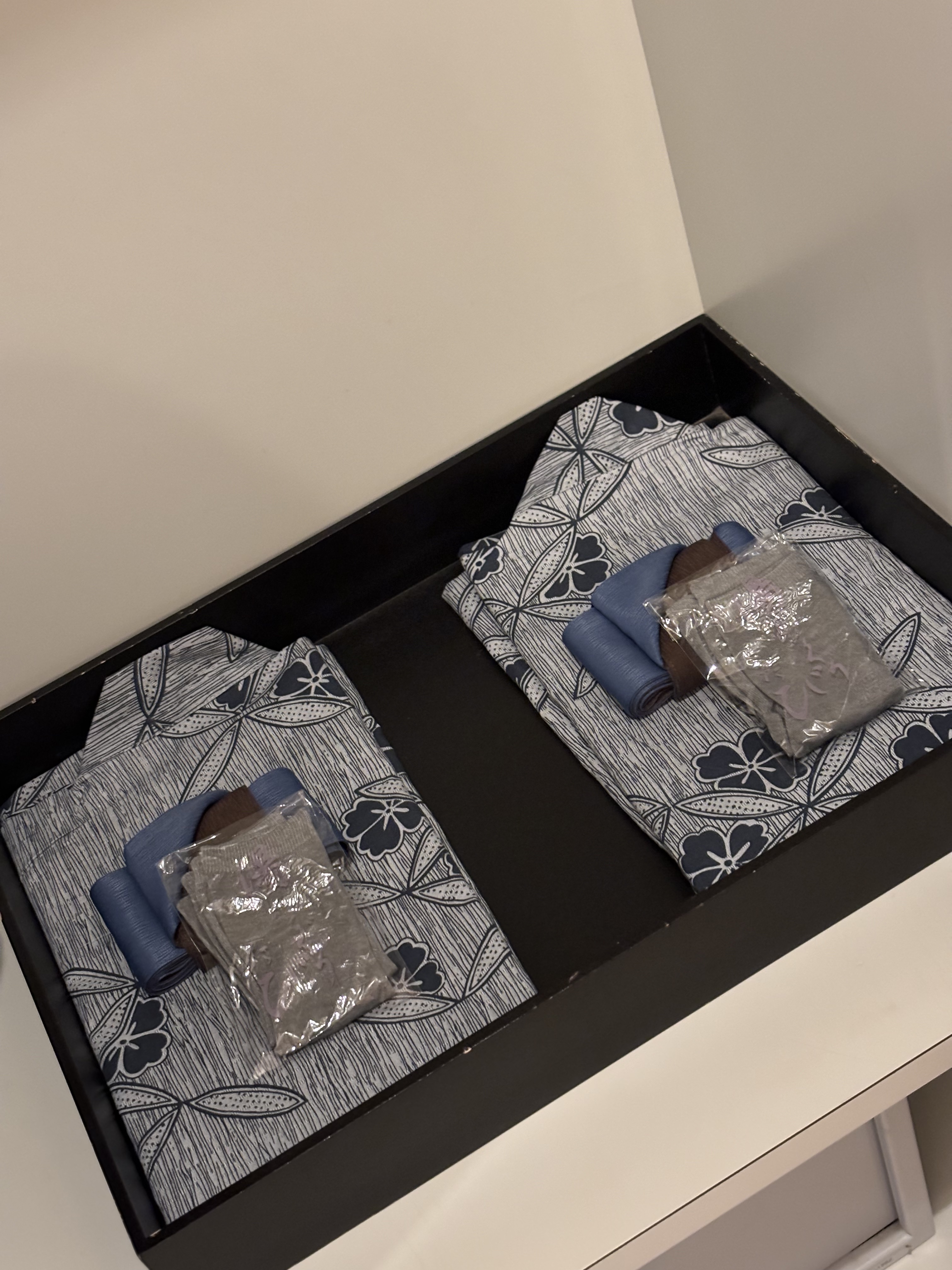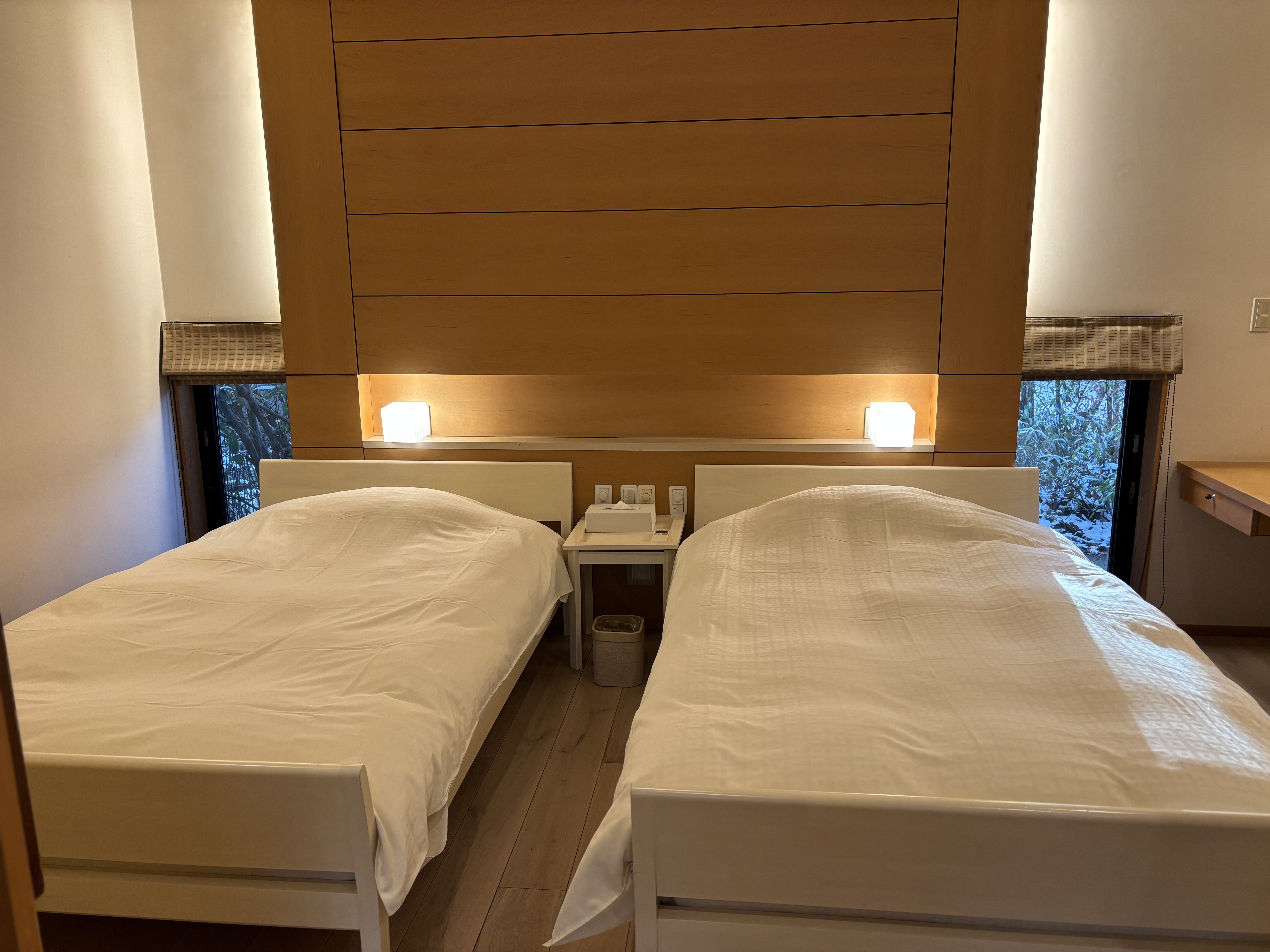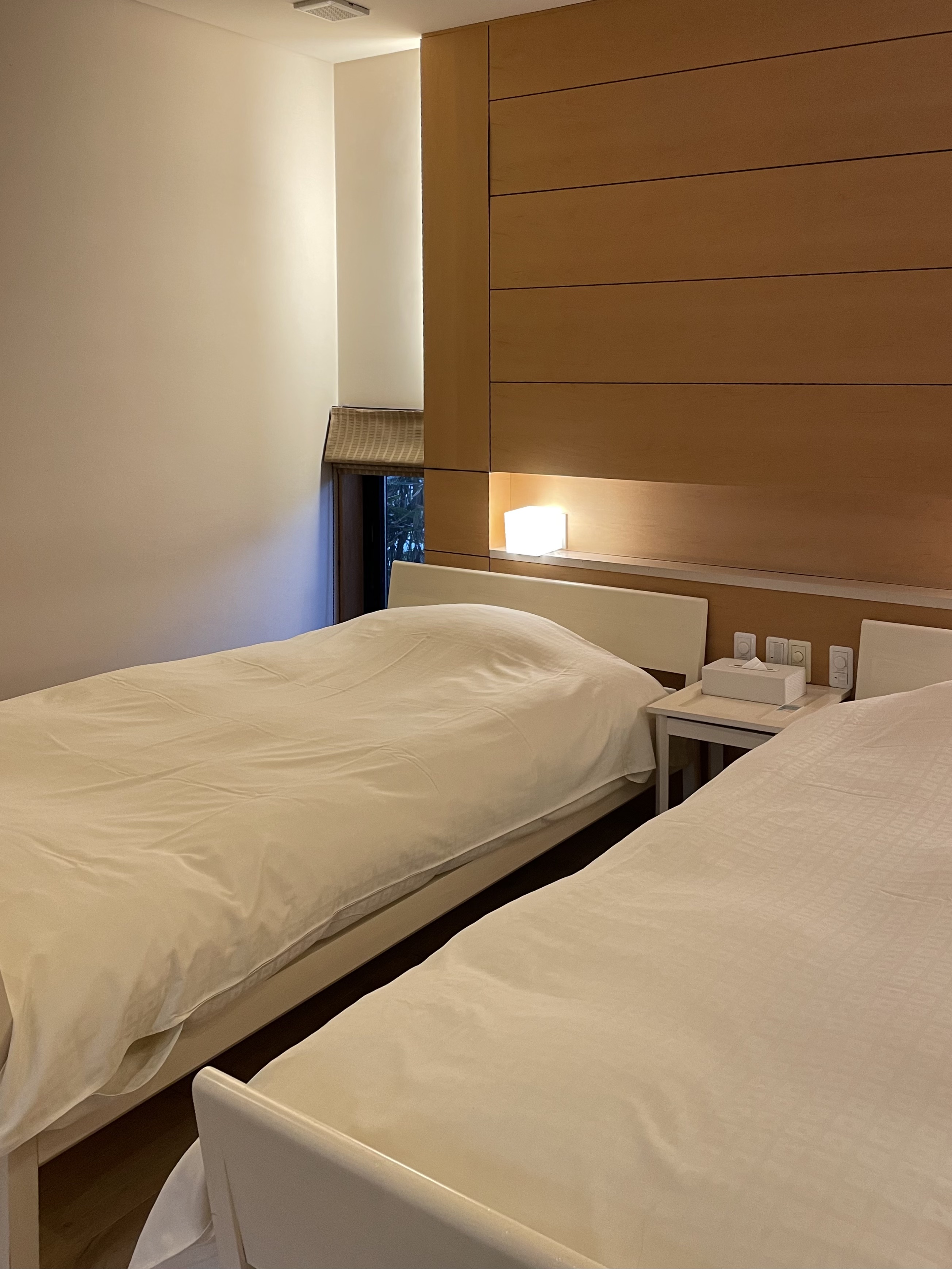 침실은 침대 형대로 되어 있다. 사실 이 부분은 호불호가 있을 것 같고, 개인적으로는 두툼한 료칸 이불에서 자는 걸 선호하지만 깨끗해서 좋았던 것 같다. 그리고 따로 이불 장도 있어서 거실에 이불펴고 자도 된다. 나는 이 날 거실에 이불 깔아놓고 온천욕 즐기고 이불에 드러눕고를 무한 반복했다.
