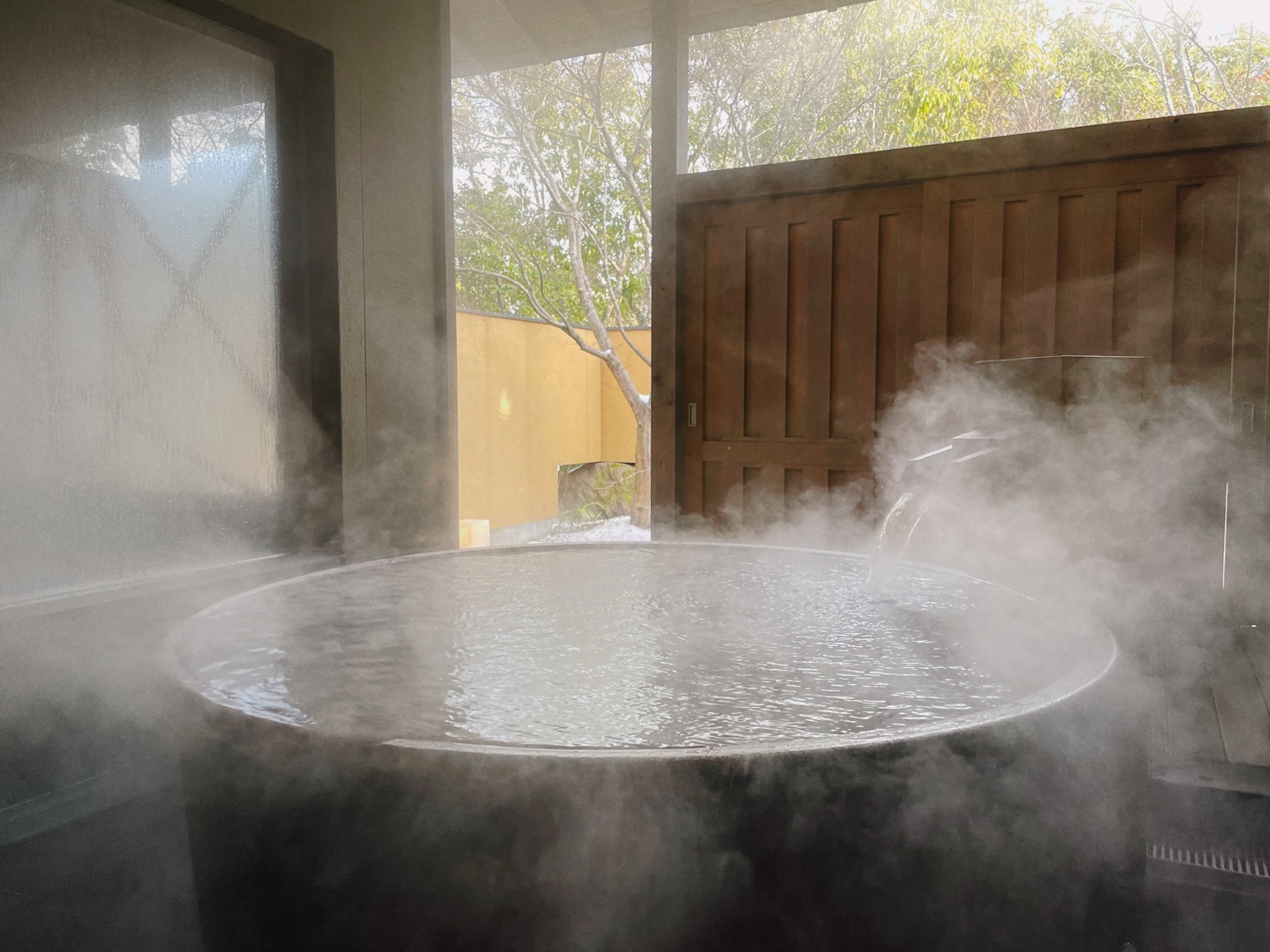 처음 베테이 이츠키를 예약했을 때 마음을 빼앗긴 곳이기도 했던 두번째 노천 개인탕! 객실 소개해주실 때 직원분께서 물을 틀어주신다. 바깥 돌 정원과 연결되어서 시원한 바람도 느끼며 노천 온천을 즐길 수 있다. 다만 바깥에있는 온천이다보니 물을 조금 더 뜨겁게 틀었는데, 뜨거워서 오래 있지는 못했다 ㅠ