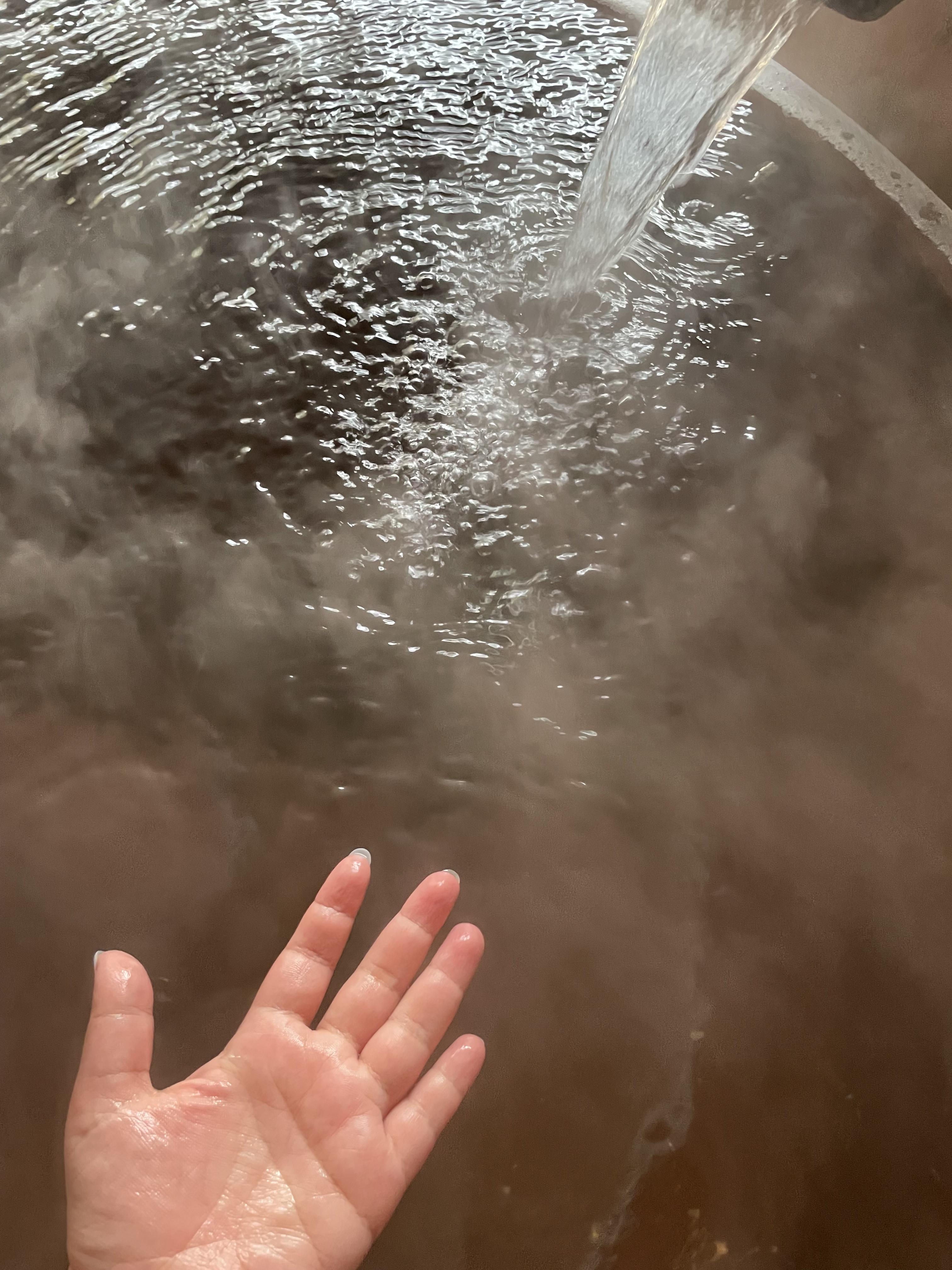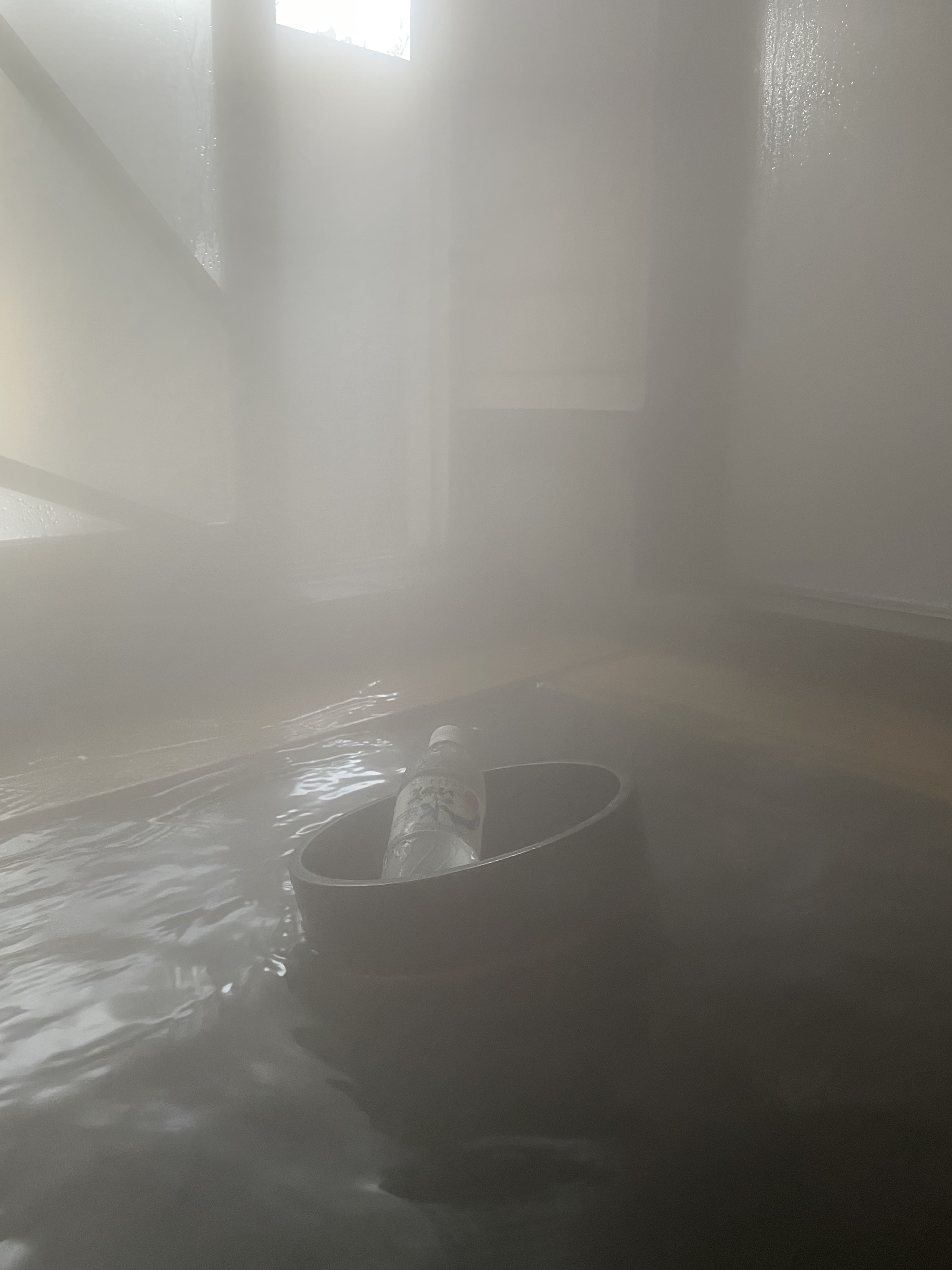 실내 목욕탕이 춥진 않지만 그래도 물을 한번 휘휘 저어주고 물 바구니에 생수를 하나 가져가 둥둥 띄워놓고 더울 때 마다 물을 한 모금씩 마시면서 온천을 즐기면 좋다. 물이 아니라 맥주 아니냐고? 맥주는 노천 온천때 먹어야 감성이 폭발한다고!