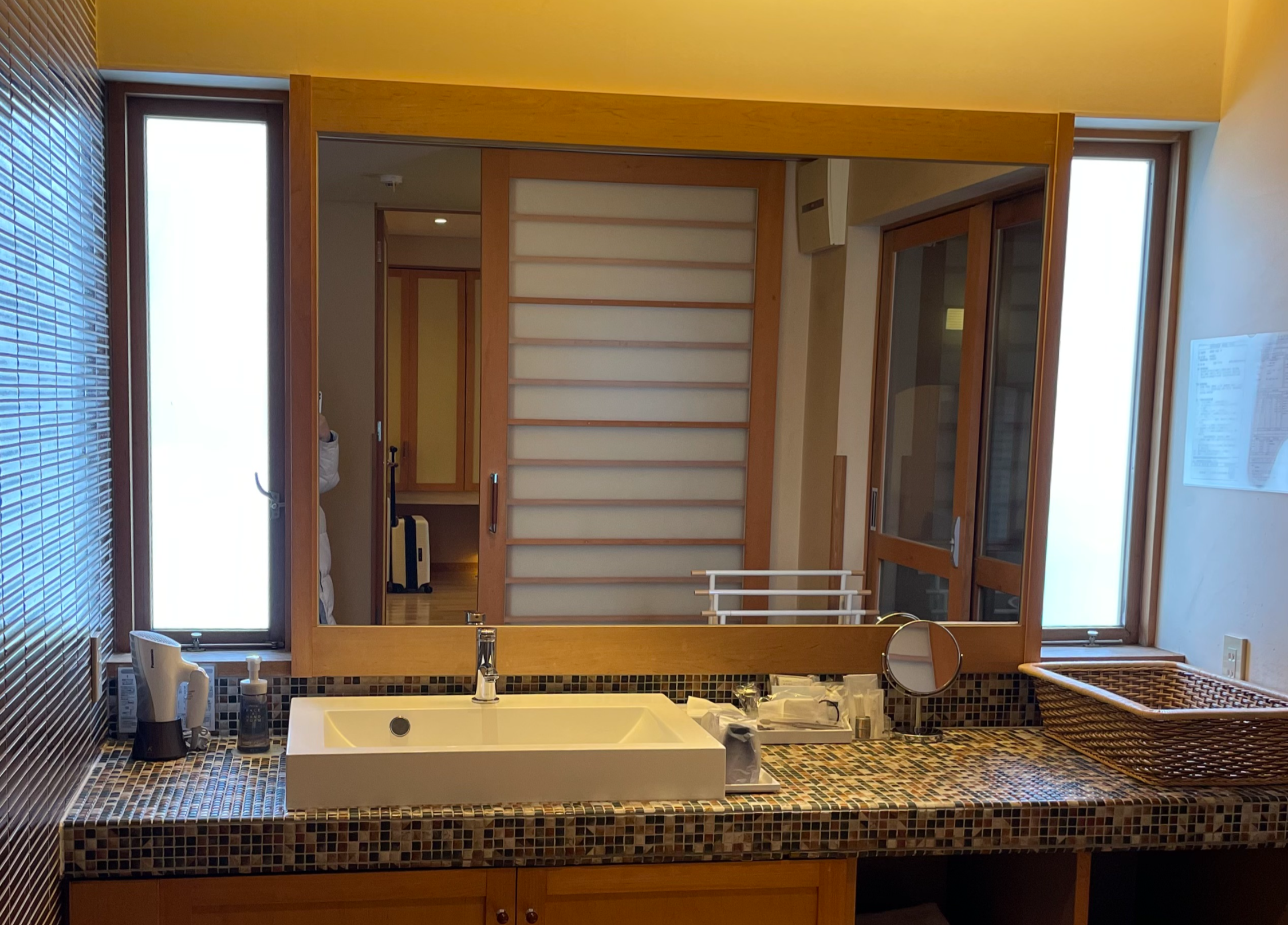 온천과 연결되는 공간에는 세면 공간이 엄청 큼지막하게 있다. 다른 료칸은 대욕탕이 아닌 이상 이런쪽 영역을 되게 작게 빼는데, 수건도 넉넉하고 어메니티도 넘쳤다. 정말 좋은 곳에 묵고 있다는 느낌이 들어서 행복했다!