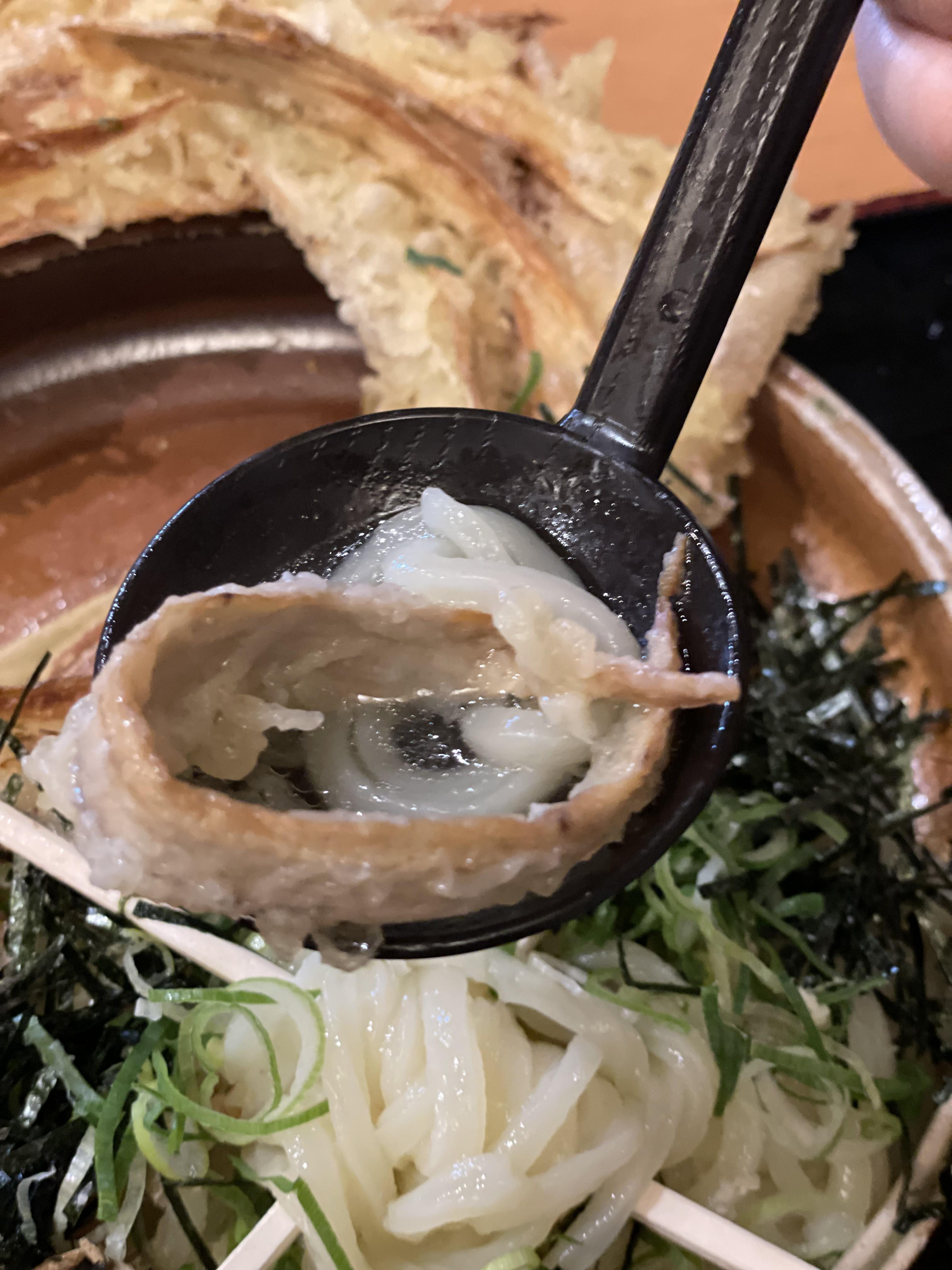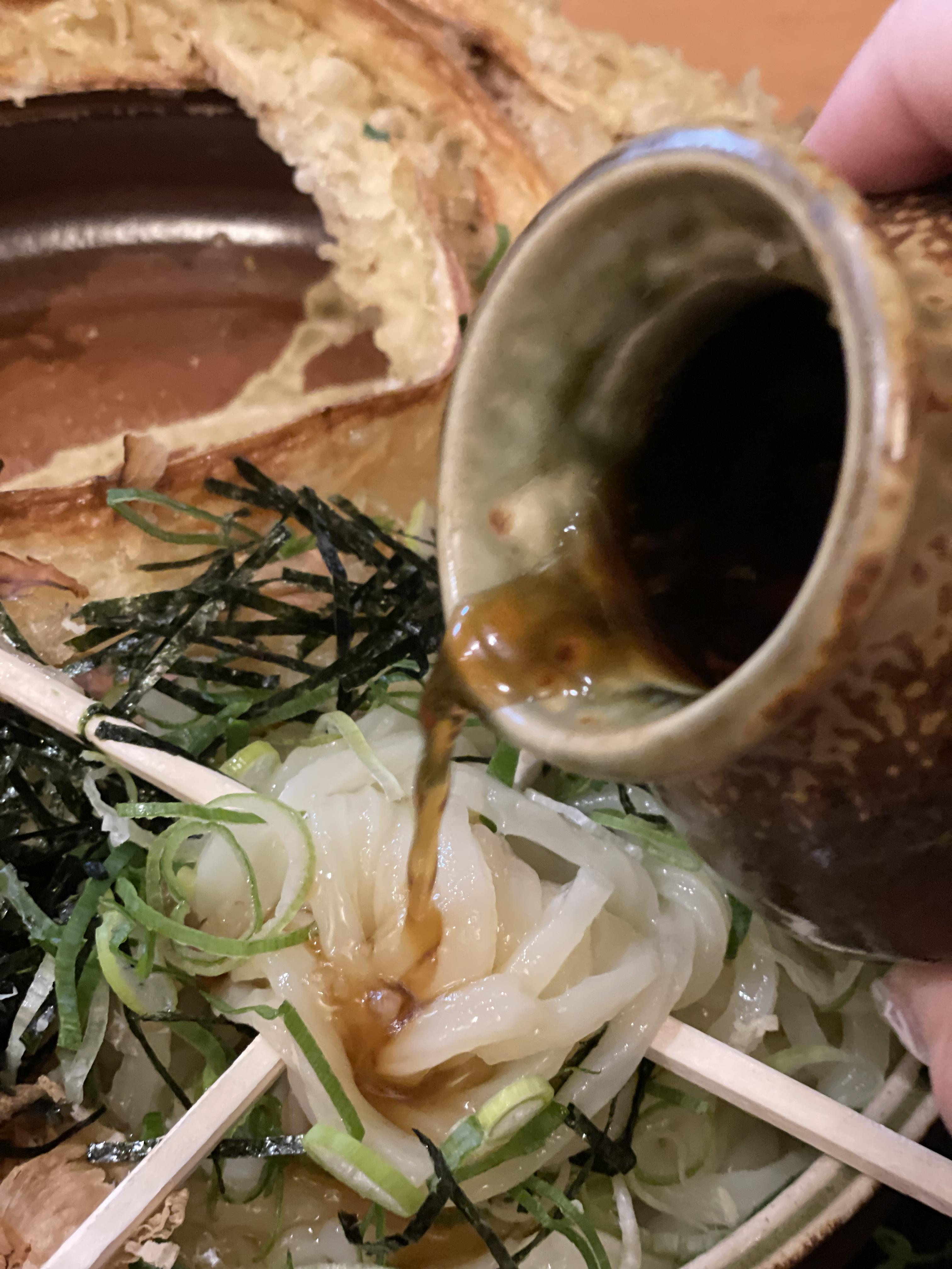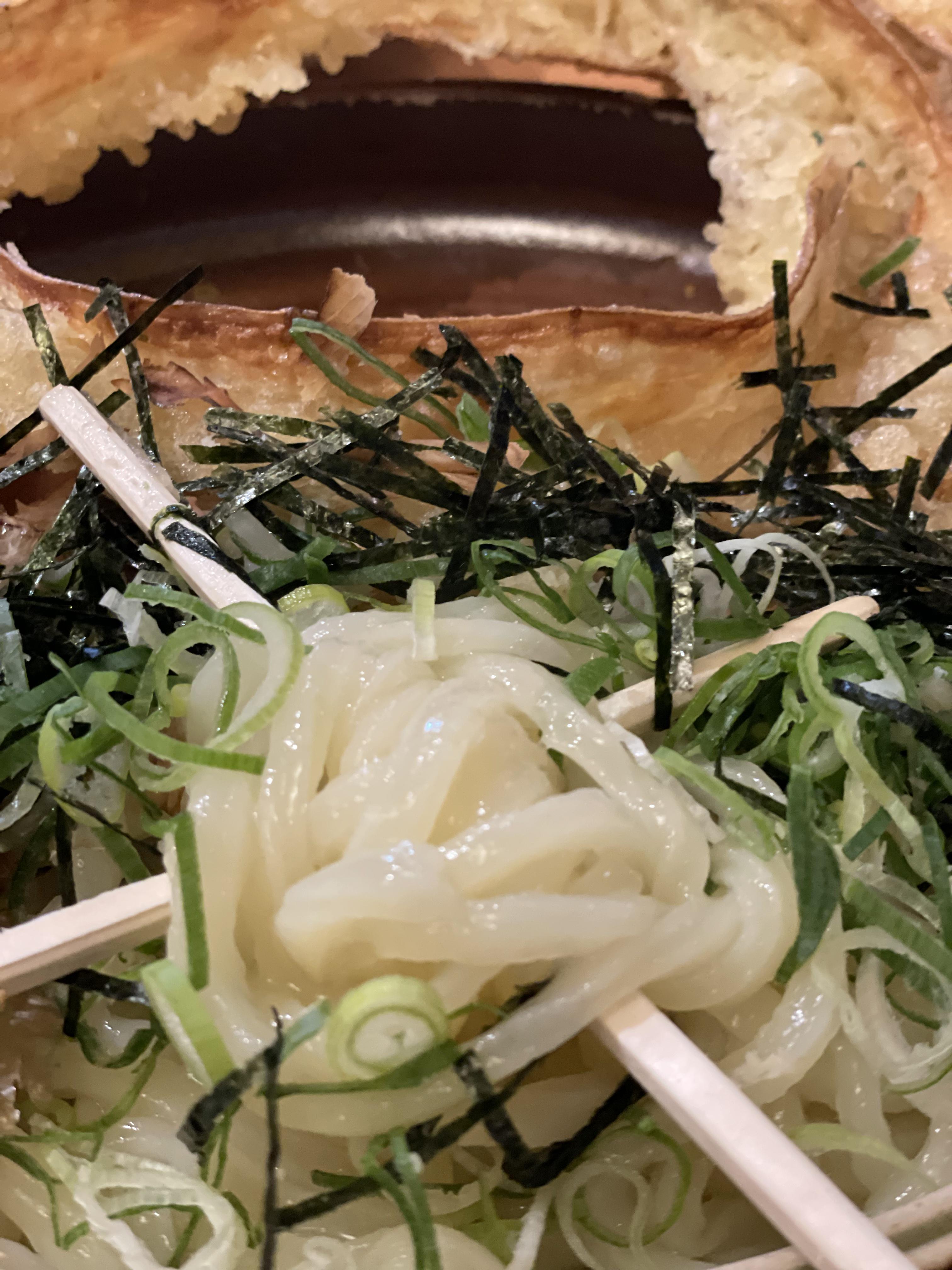 나는 차가운 면이라서 우엉 튀김이 막 부드럽게 퍼지지는 않았지만, 오히려 우엉 식감을 느낄 수 있어서 좋았다. 갈은 무우는 필수! 나는 무를 양념에 다 밀어넣고 부으면서 먹었다. 면도 정말 쫄깃쫄깃하다. 우엉도 우엉인데 여기는 면발이 장난이 아니다