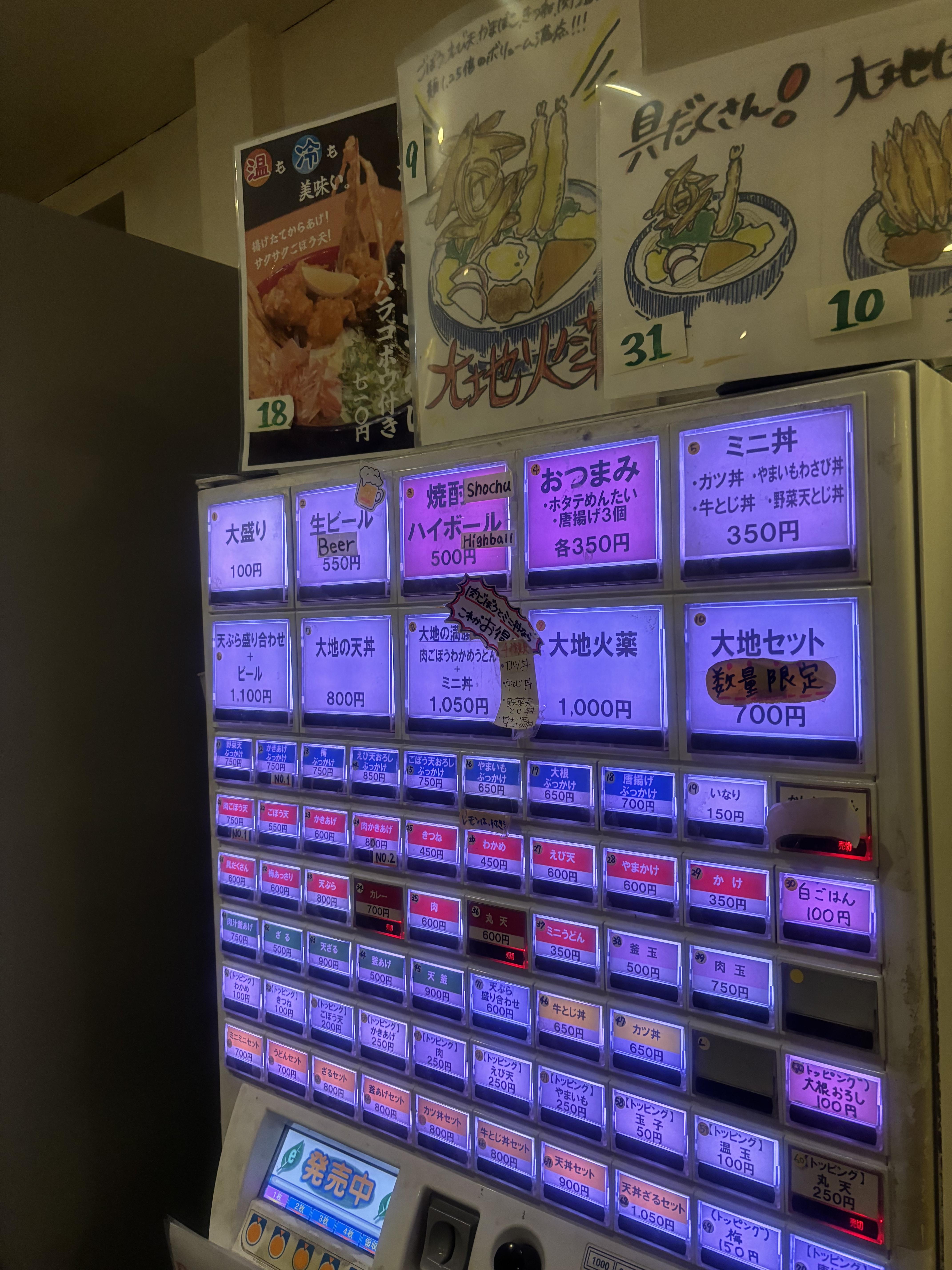 이런 일본 자판기 처음으로 이용해봤다. 처음에 내가 주문하려고 하는 최종 금액의 돈을 먼저 넣고, 원하는 메뉴를 선택하면 차례대로 식권이 나온다. 그리고 버튼을 누르면 잔돈이 나온다. 일반 음료 자판기랑 프로세스는 똑같은데 뭔가 새로운 문물을 접하는 마냥 어버버했다고 한다.