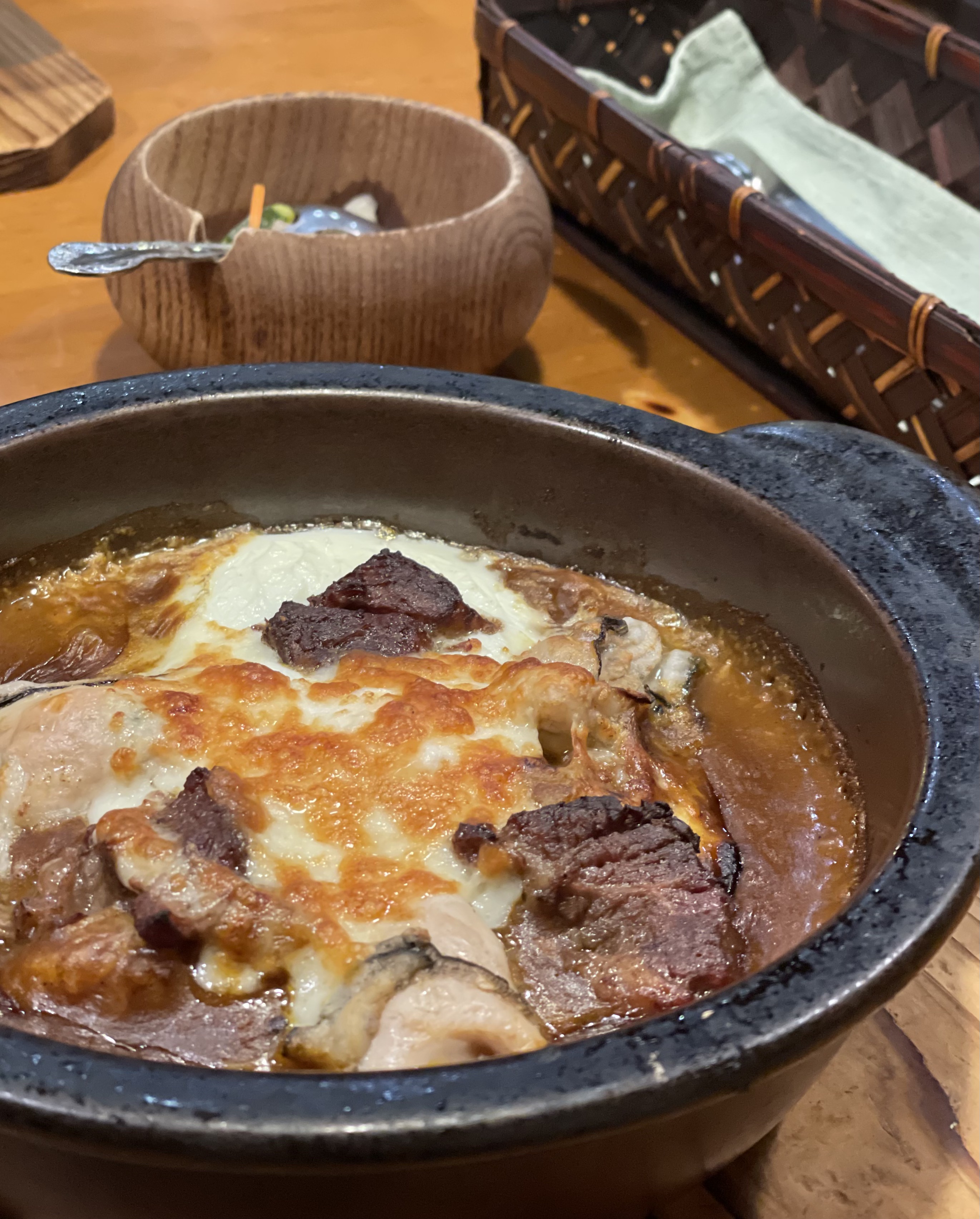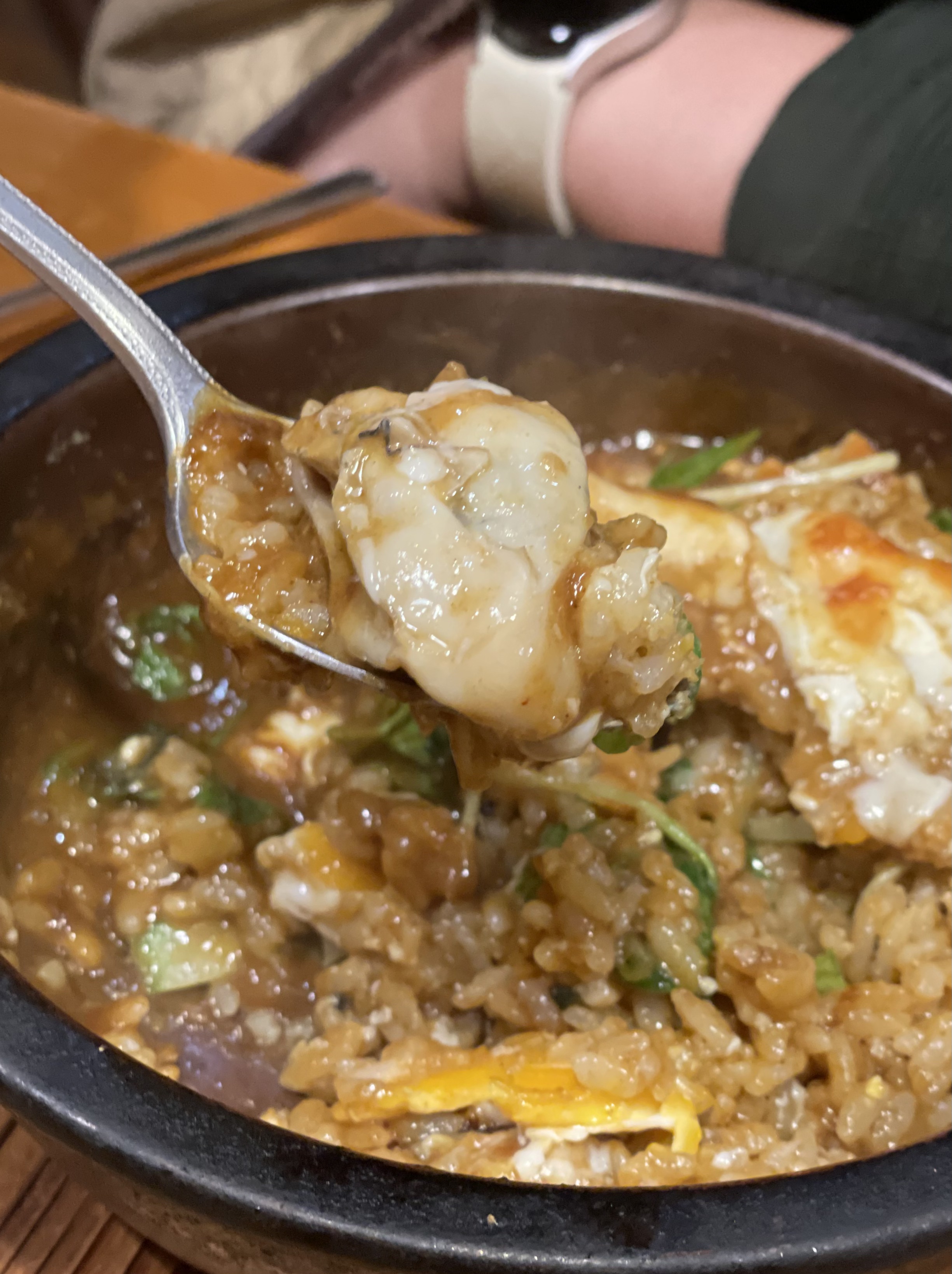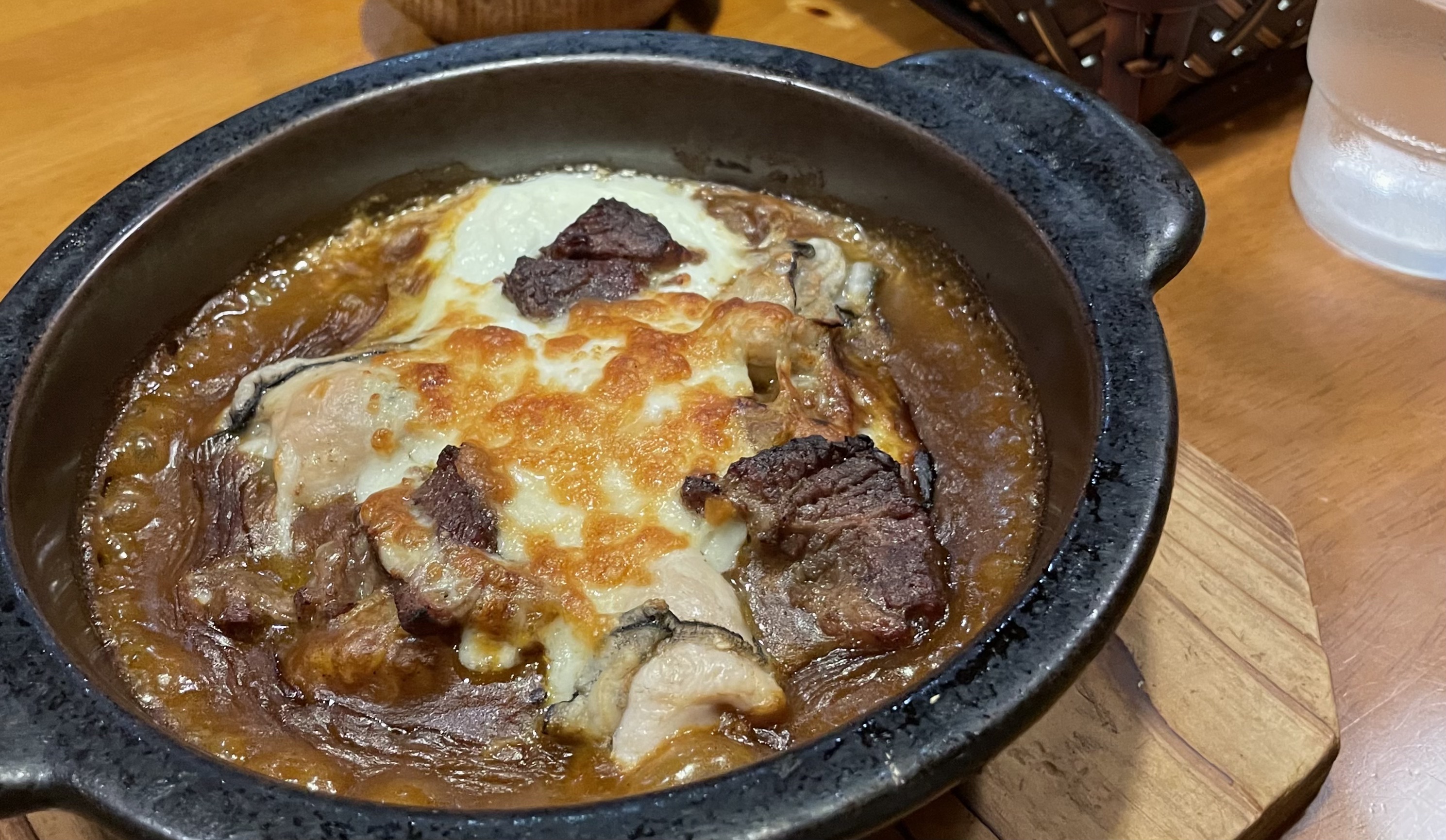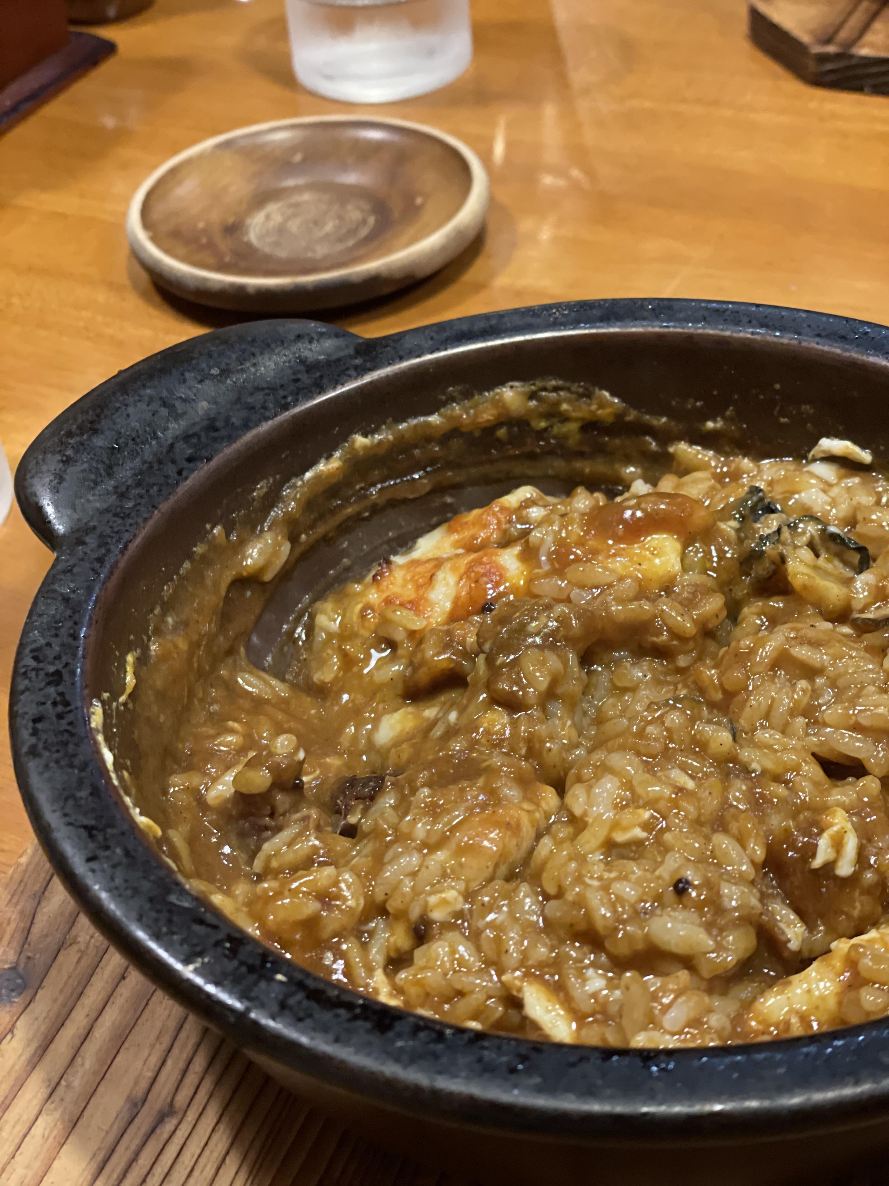 맨 위에는 기본으로 치즈가 얹어져서 나오는데 카레랑 섞으면서 부드러운 맛을 낸다. 치즈의 느끼한 맛은 강하지 않으니 안심해도 된다. 메뉴는 역시 구운 굴!! 야끼 카레를 집에서 해먹어야한다고 난리피웠던 게 바로 이 요리였다. 카레도 끓여져서 진한 맛이 나고, 굴도 신선하면서 풍부한 맛을 준다.