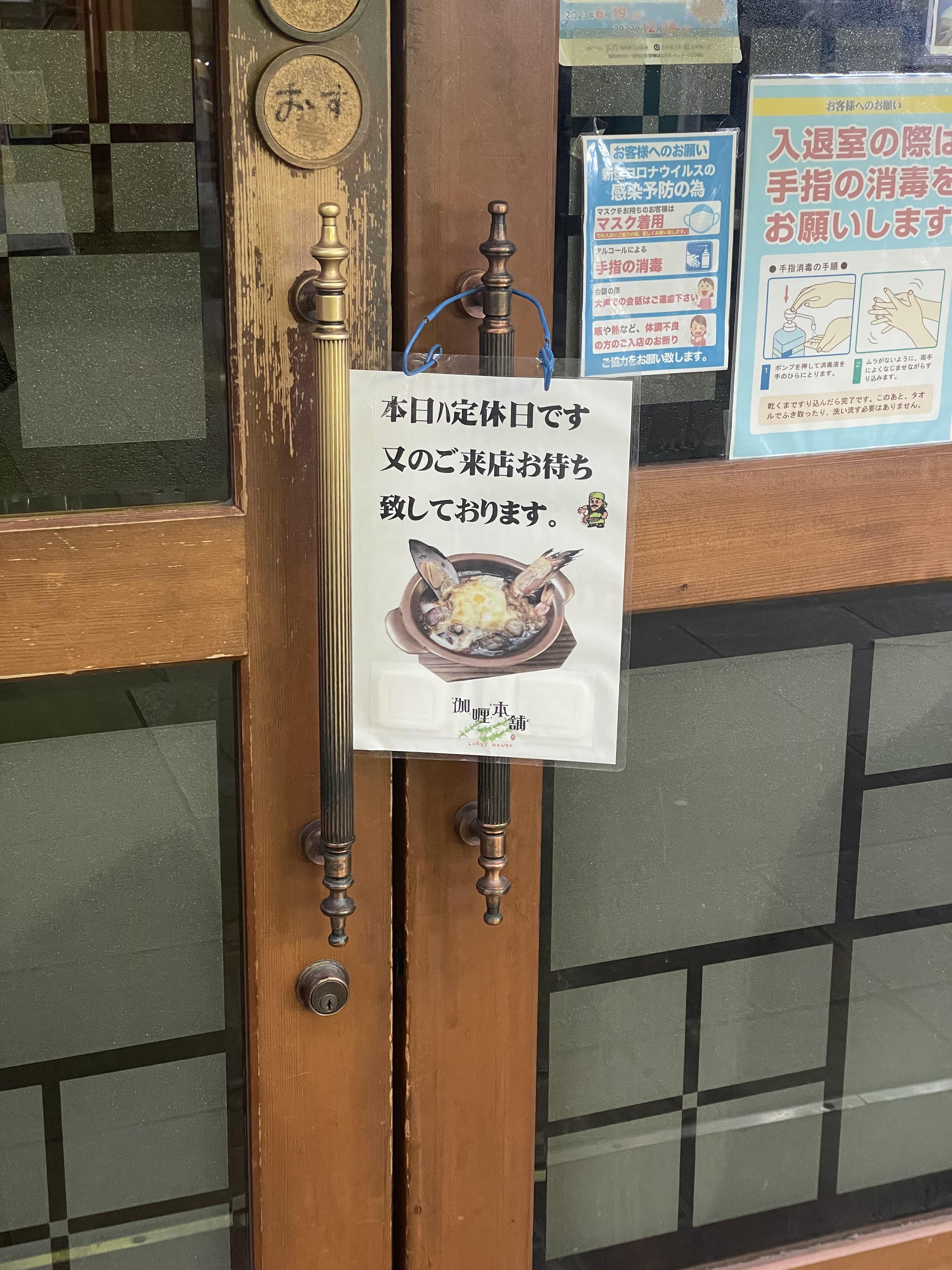 이런 표지판이 걸려있다면 쉬는 날이라는 뜻입니다 ^_^. 목요일에 일본 오자마자 첫 끼로 야끼 카레를 점찍어놨는데 정기 휴일이었다는 사실.. 그만큼 우리가 엄청 먹고 싶었다는 뜻이지 뭐