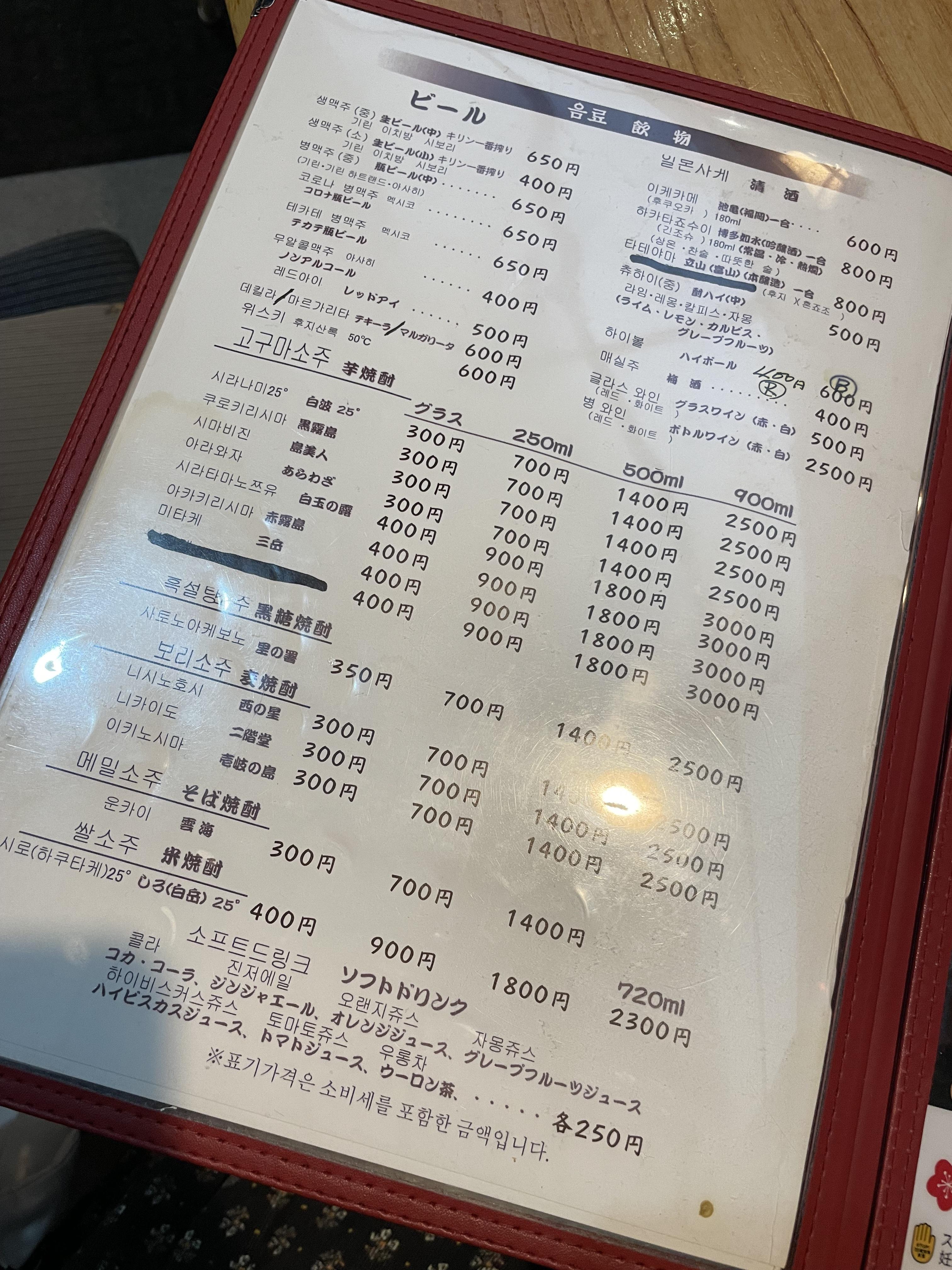 안주들은 싼 편이다. 1차로 먹기에는 밥되는 것들이 애매한 편이라, 2차로 와서 먹는 게 좋은 것 같다. 주먹밥같은걸 술집에서 먹기는 좀 그러니까 ^_ㅠ