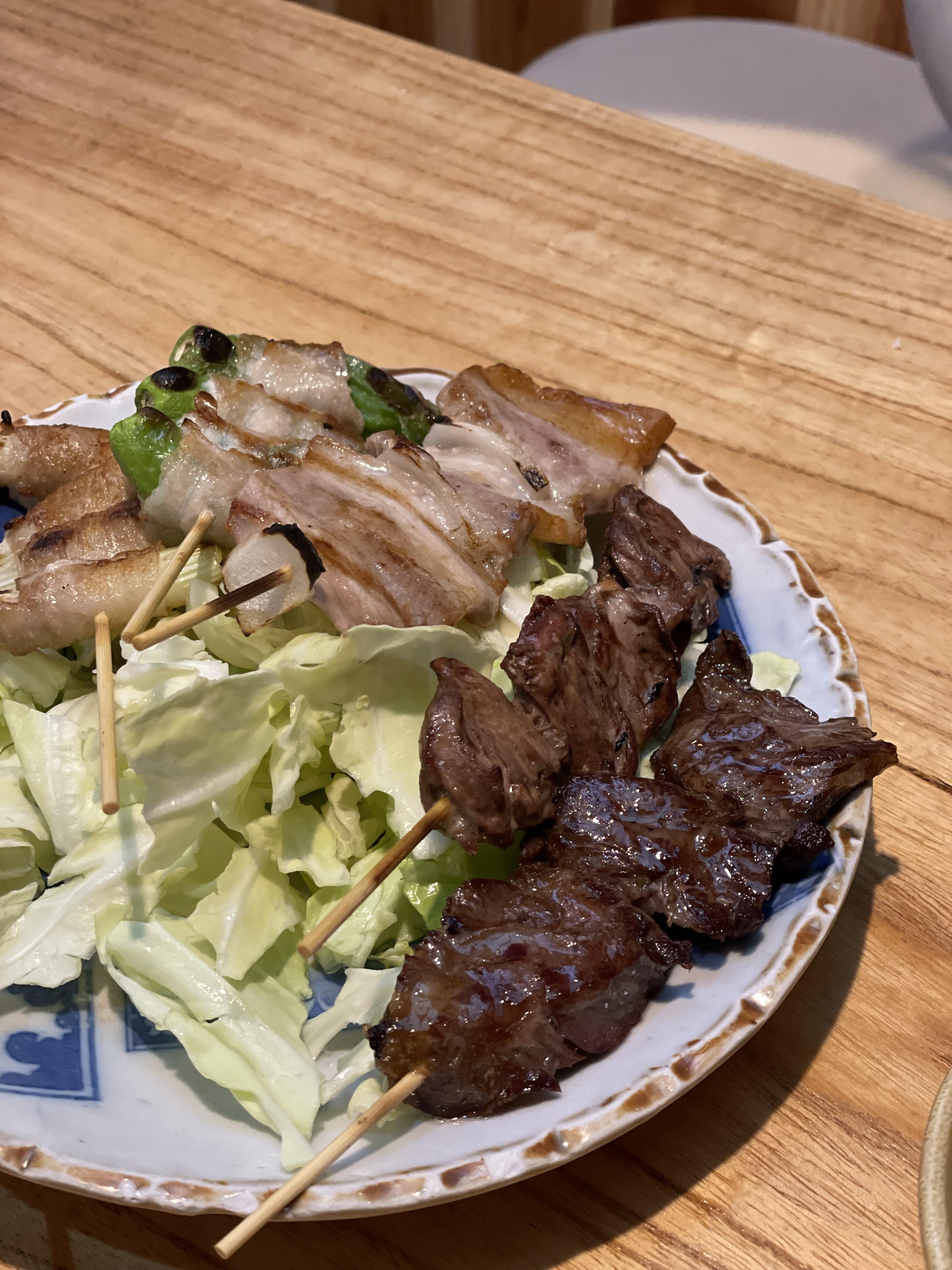 이건 모듬 꼬지였던 것 같다. 하나씩 빼내서 양배추랑 먹으니까 이것도 순삭이었다.