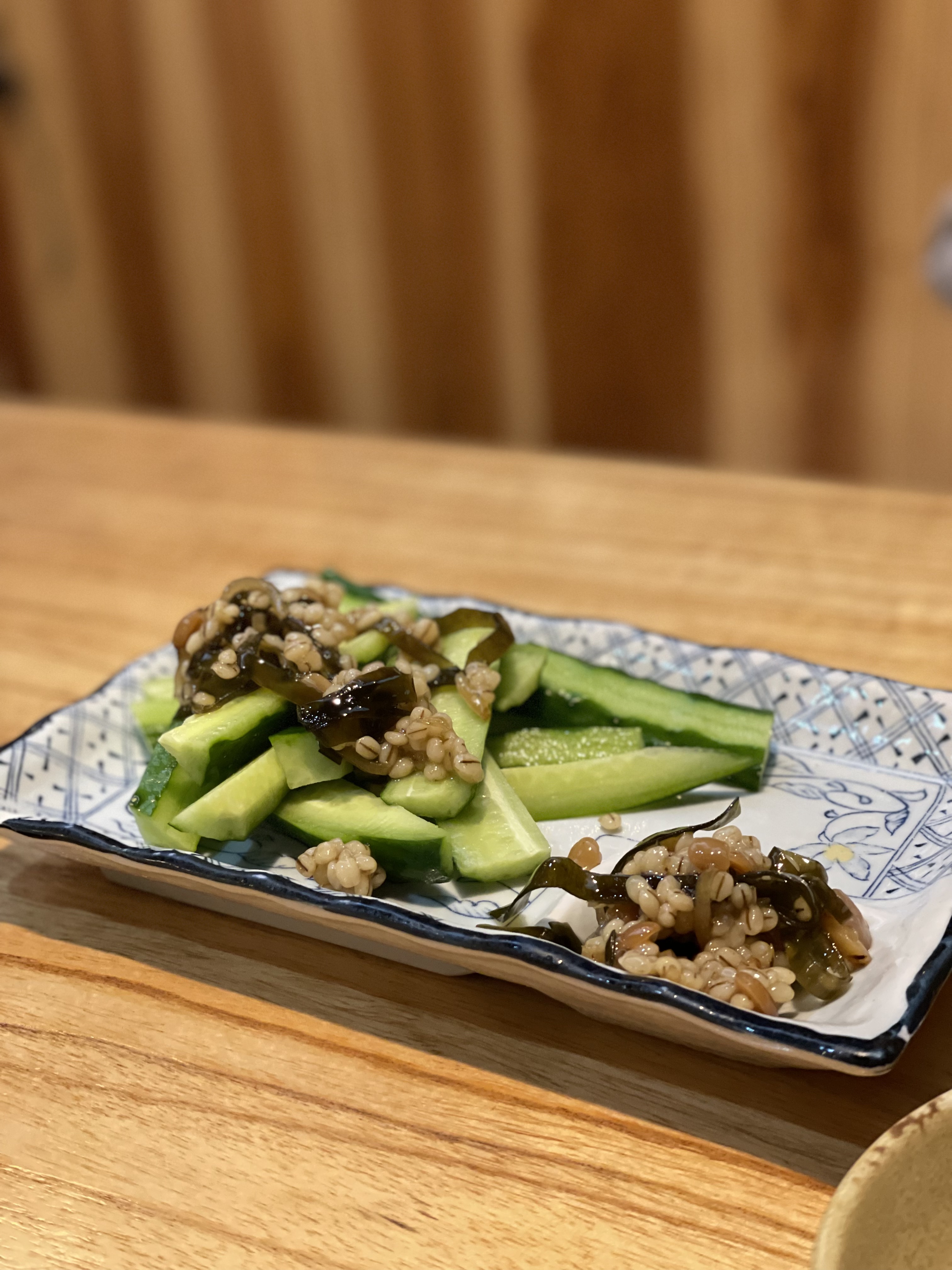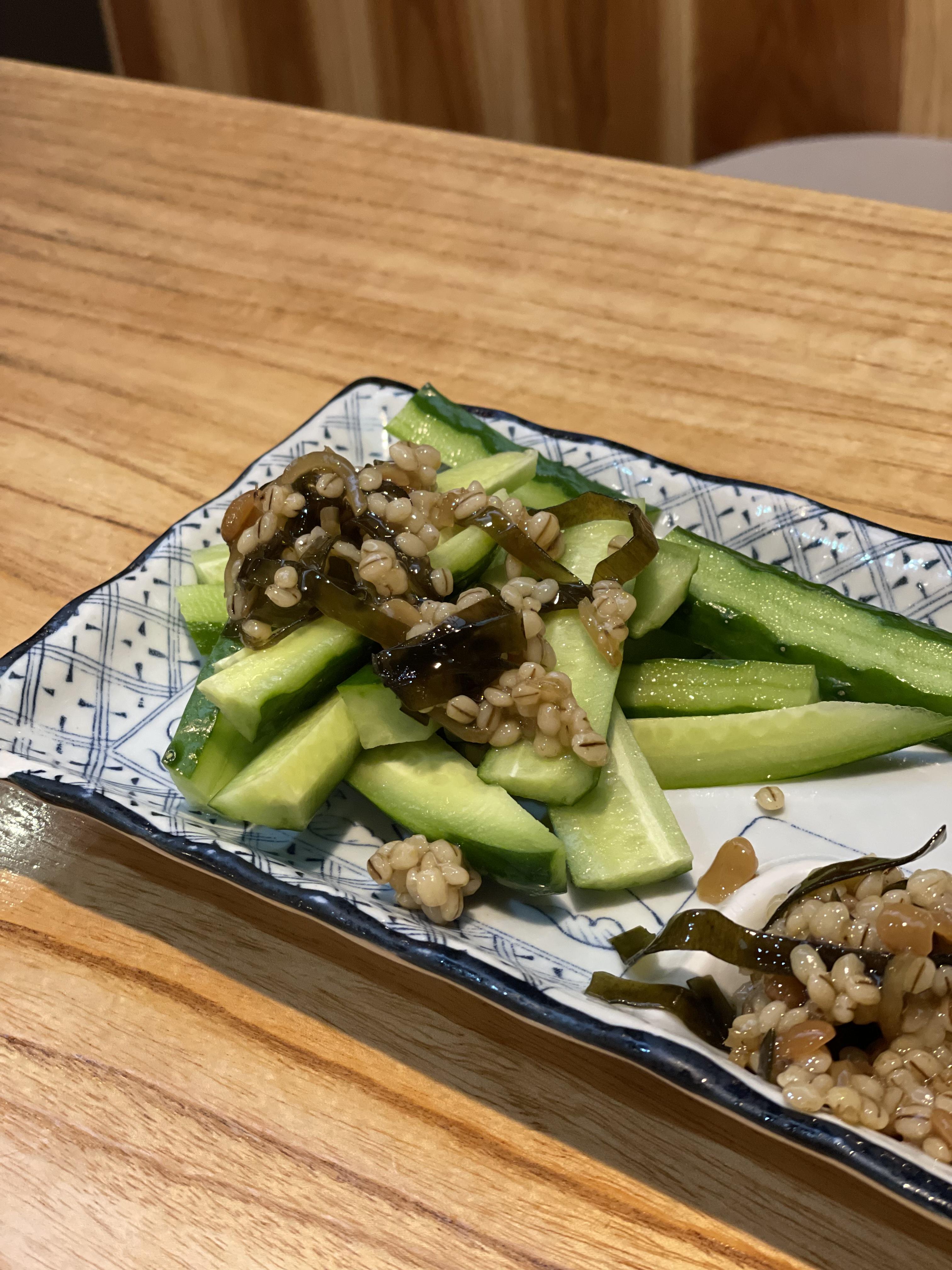 보리 된장?과 오이가 버무려진 요리였는데 괜찮았다. 짭짤해서 술 안주로 먹기 좋았다.