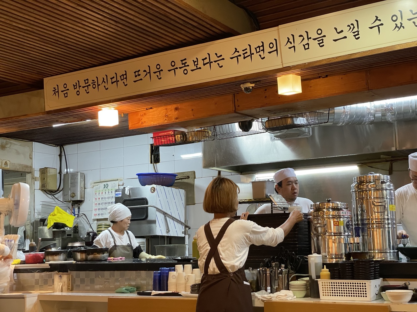 매장과 테이블은 전반적으로 넓은 편이다. 오픈 키친 형태라서 수타면을 만드는 것도 볼 수 있다. 2명 테이블, 4명 테이블, 단체 테이블 여러개가 있기 때문에 나랑 동글이는 보통 2인 테이블에서 오붓하게 먹는다.