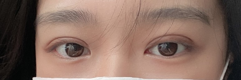 아래서 찍었을 때는 확실히 눈매 교정 티가 나는 것 같아요. 속눈썹이 많이 올라간게 느껴집니다. 눈 앞머리의 붓기는 많이 빠진 것 같고 중간~뒷쪽 붓기가 많이 빠져야 할 것 같아요.