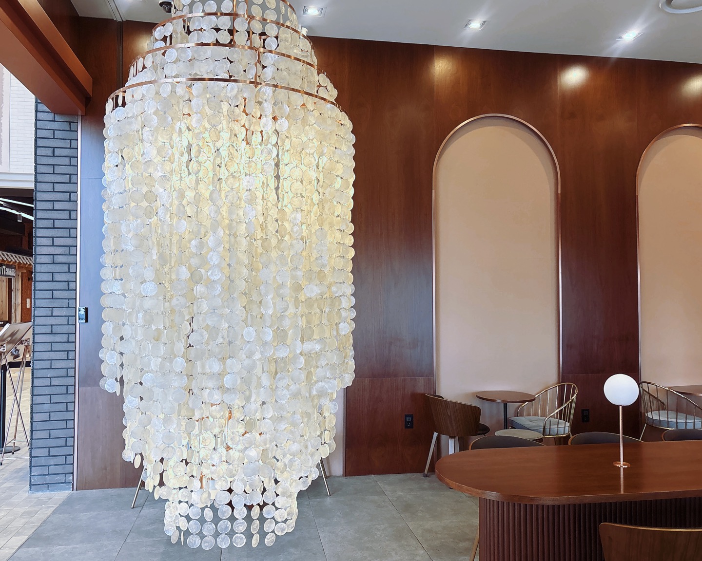 매장의 시그니처는 자개가 달린 커다란 샹들리에