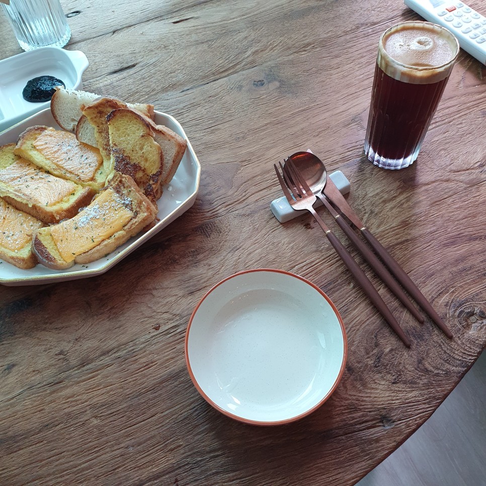 1. 브레빌 커피머신을 사용해 원두를 분쇄하고 원두가 담긴 포터 필터를 본체에 끼운다. 얼음과 물을 채워 커피를 내린다. 끝나고 나면 넉박스에 원두를 턴다. 포터 필터는 싱크대에 담구거나 천으로 닦아 준다. 커피를 들고 책상에 앉는다.