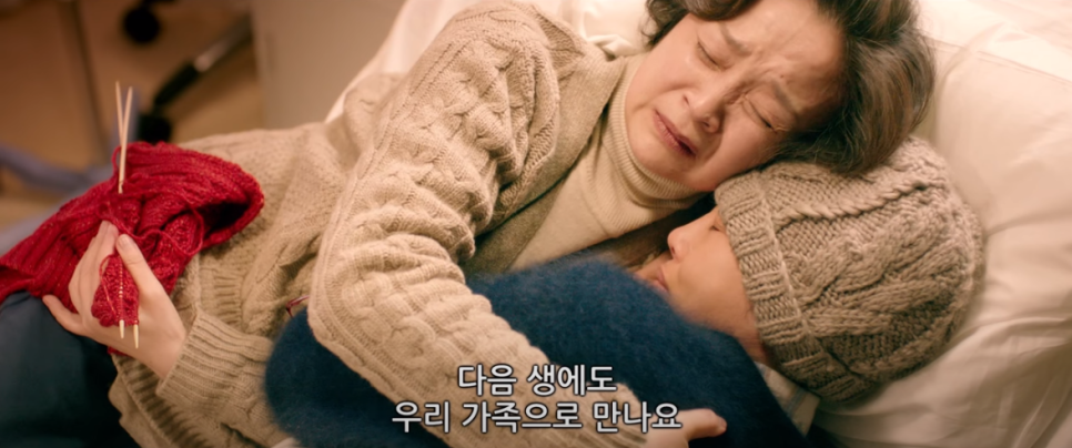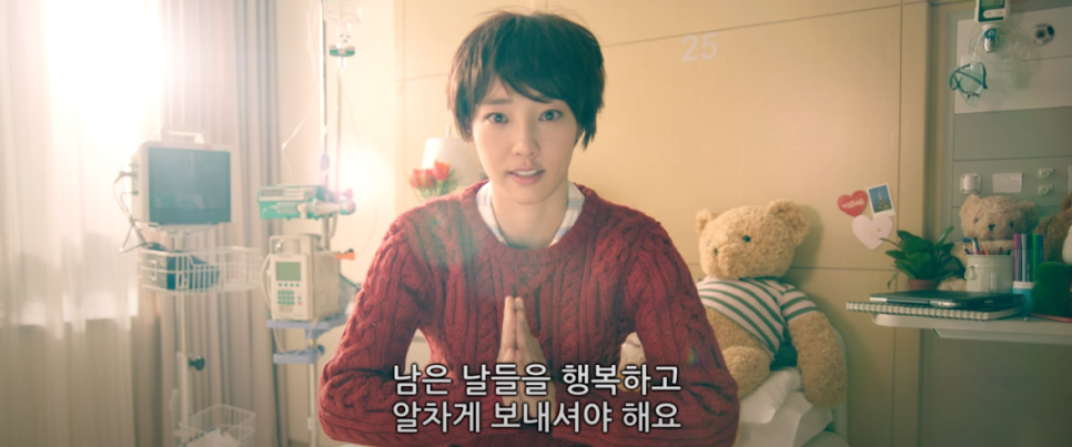남자 주인공의 핸드크림, 생일선물로 줬던 자작곡 인형같이, 존재의 흔적들은 죽음의 사실을 더 명확하게 만든다. 영화에서는 그런 감정선들을 잘 살렸다. 특히 모태의 공간인 엄마에게 안겨 어릴때처럼 입술을 만지며 잠드는 여주인공의 모습은 죽음이라는 큰 두려움 앞의 작은 인간의 근본적인 행동이었다. 희망을 가지고, 냉정을 찾지만, 동시에 느끼는 두려움을 피해 태초에 나를 보호해주던 깊은 곳으로 떠나 안정을 느끼고 싶은 욕구를 말이다. 우정과 사랑, 가족애를 동시에 담아내었다. 사람은 사랑을 통해 성장해왔다는 걸 증명할 수 밖에 없는 장면이었다. 그래서 영화를 보며 웃고 울 수 있었다.